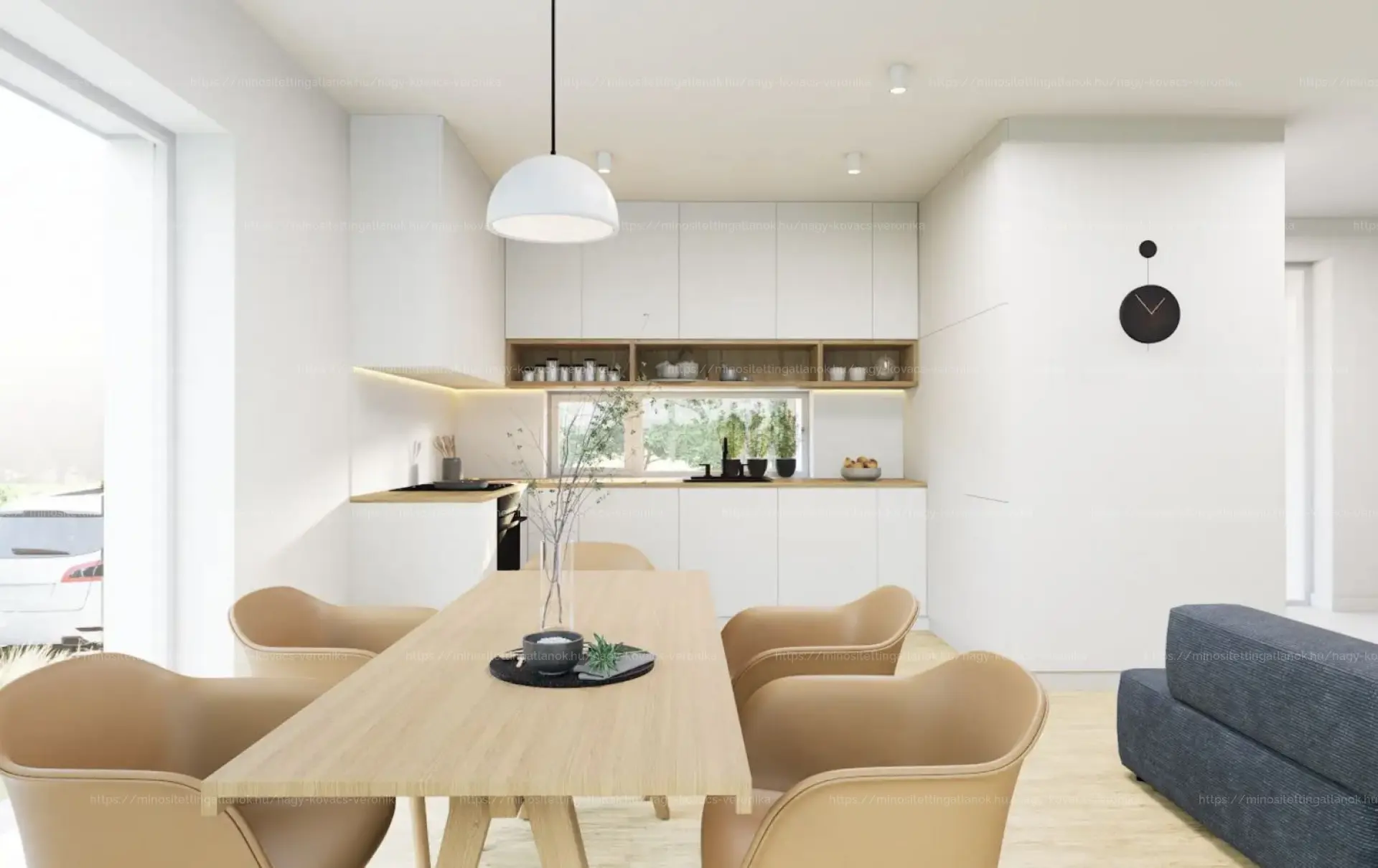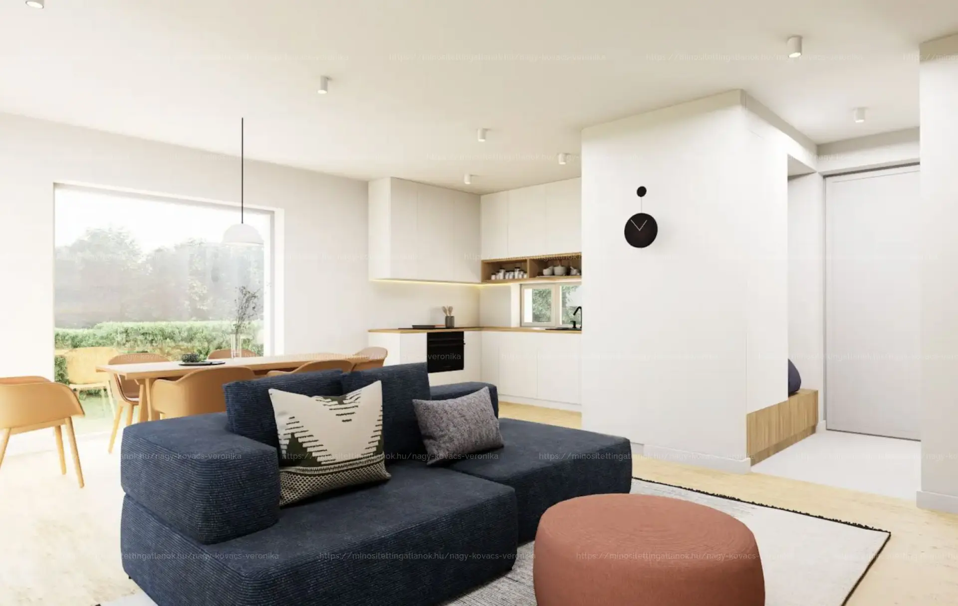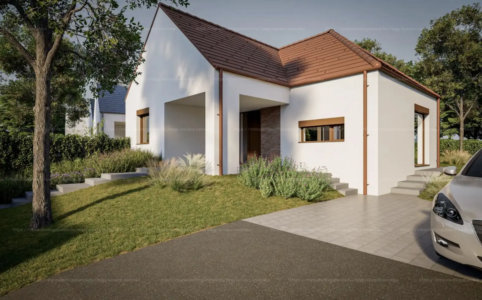 A ház építése most indul, így még minden vadonatúj lesz, amikor beköltözöl – a látványtervek pedig segítenek elképzelni, milyen lesz itt élni. A természetes fényben úszó nappali, a teraszra nyíló tolóajtó vagy a kert nyugalma már most is érezhető a részletekben.