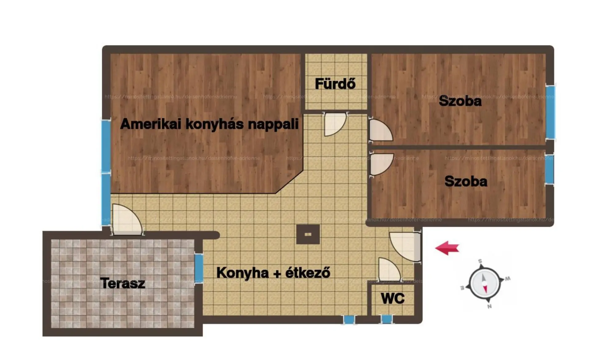 Megvételre kínálunk egy 59 m²-es, 4 m² TERASSZAL rendelkező, kétszobás, AMERIKAI KONYHÁS lakást. A tágas nappaliból HANGULATOS, KERTRE NÉZŐ TERASZ nyílik. Praktikus elrendezés: két külön WC, korszerű felszereltség: újkori gázkazán, részben padlófűtés, klíma, szúnyoghálók, REDŐNYÖK és beépített bútorok.