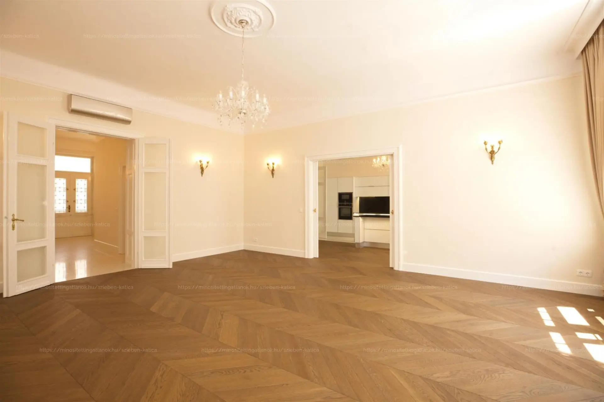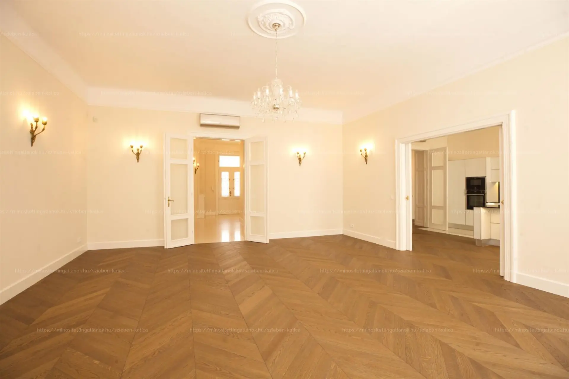 - 320 cm belmagasság, olajozott tölgyparketta, kristálycsillárok