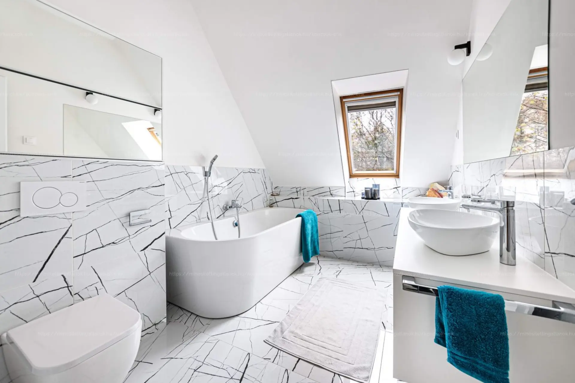 A Bosch beépített gépekkel felszerelt konyha és a prémium Hansgrohe, Arezzo, Marmy, valamint Novabell márkák használata a minőségi életérzést szolgálják.