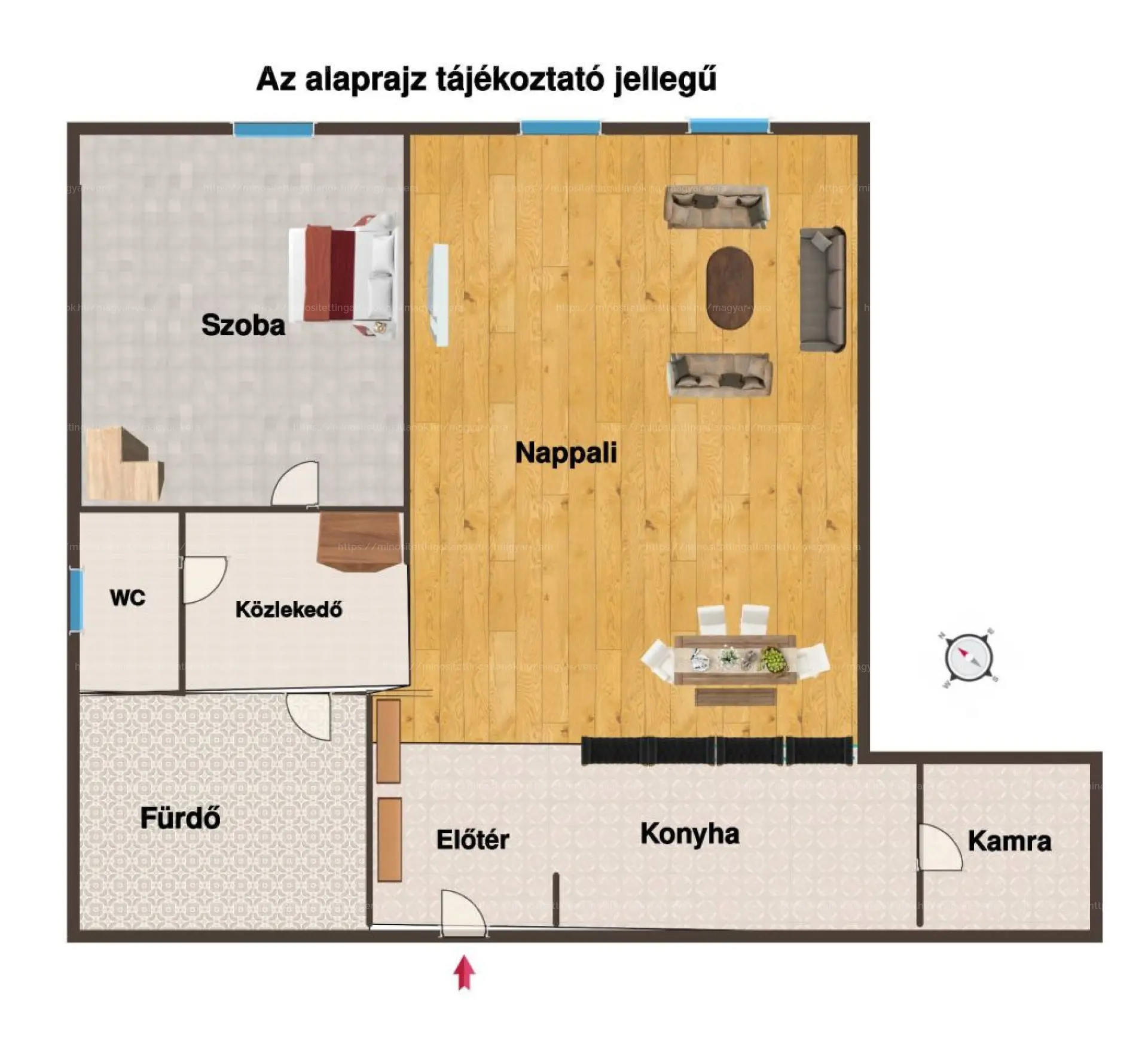 Azonnali kiadhatóság: A 74 m²-es, nappali + 1 szobás elrendezés ideális célcsoportot (céges bérlők, igényes párok) vonz.