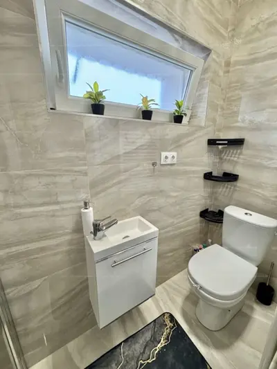 2 fürdőszoba (zuhanyzó + WC), igényes burkolatokkal