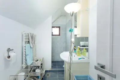 A tetőtérben pedig, három szoba, és egy fürdő- mellékhelyiség.