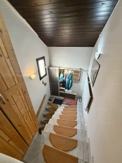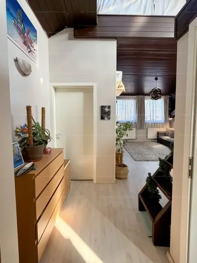 A lakásba zárt, kizárólag ehhez a lakáshoz tartozó lépcsőházból jutunk fel. Ez a nagy, zárható előtér rendkívül praktikus: itt kényelmesen elhelyezhetők cipők, kabátok, így a lakótér mindig rendezett marad.