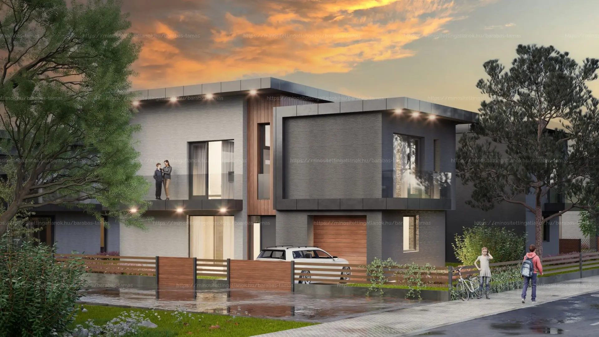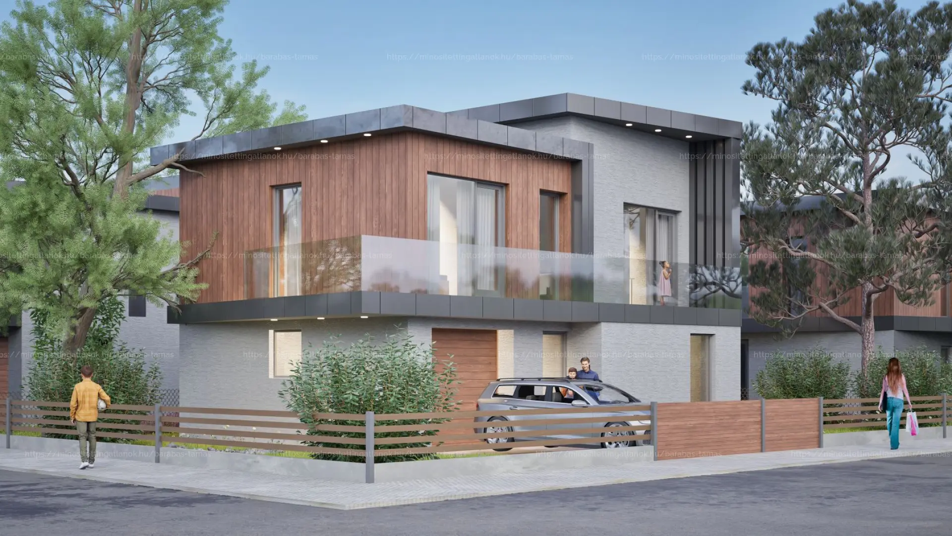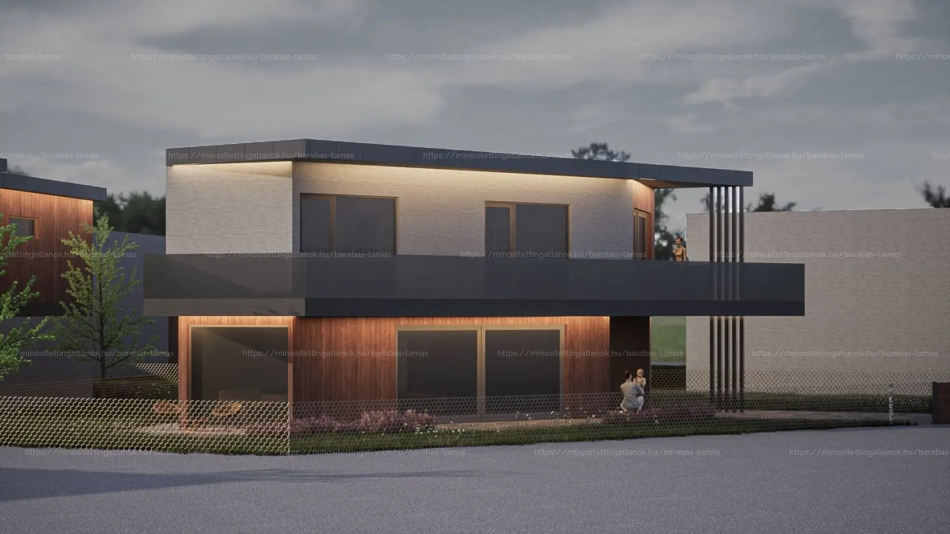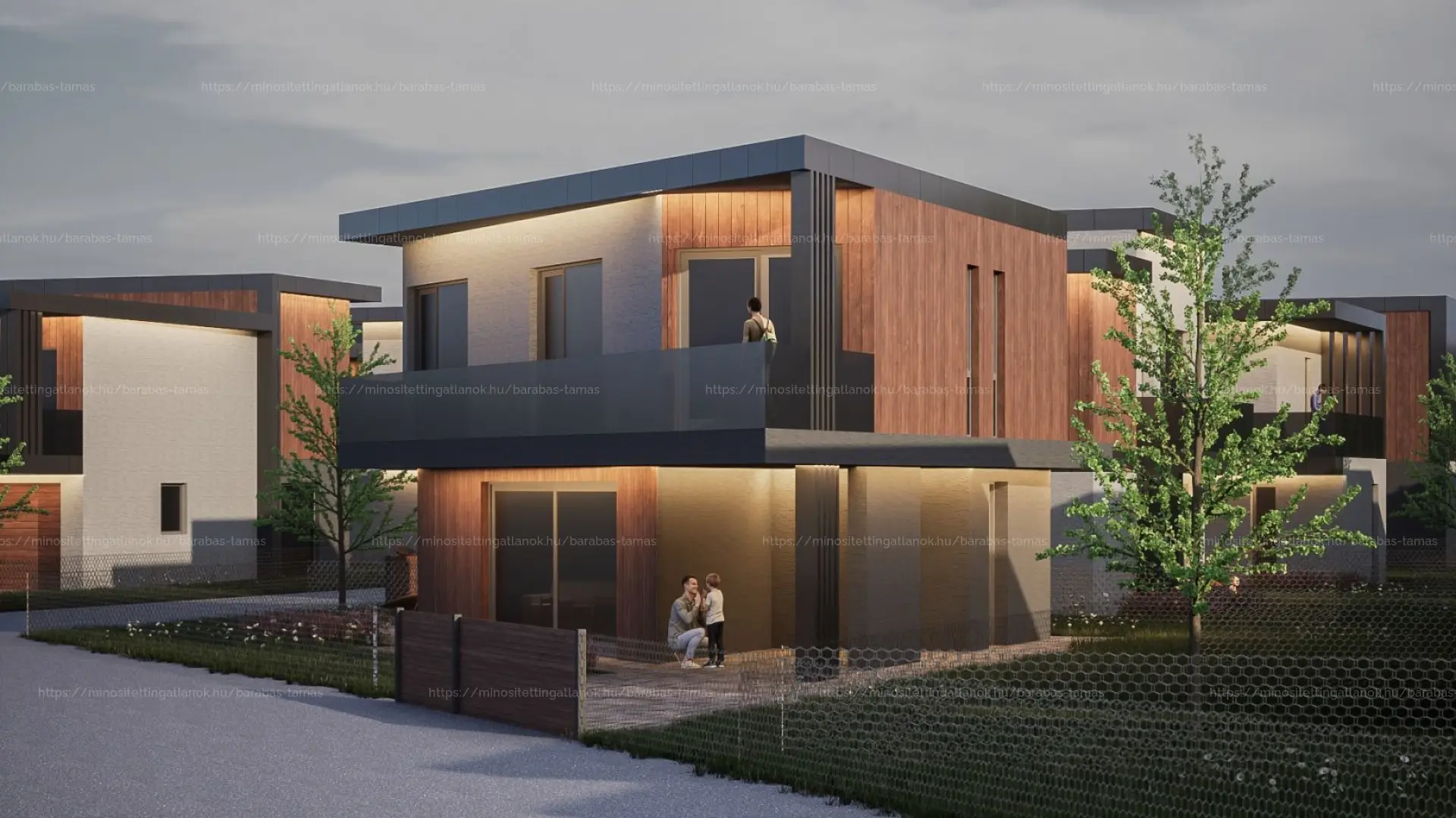 Földszinten: amerikai konyhás nappali; hálószoba, külön mellékhelyiség, közlekedő, 𝐥𝐚𝐤𝐚́́𝐬𝐤𝐚𝐩𝐜𝐬𝐨𝐥𝐚𝐭𝐨𝐬 𝐠𝐚𝐫𝐚́́𝐳𝐬.