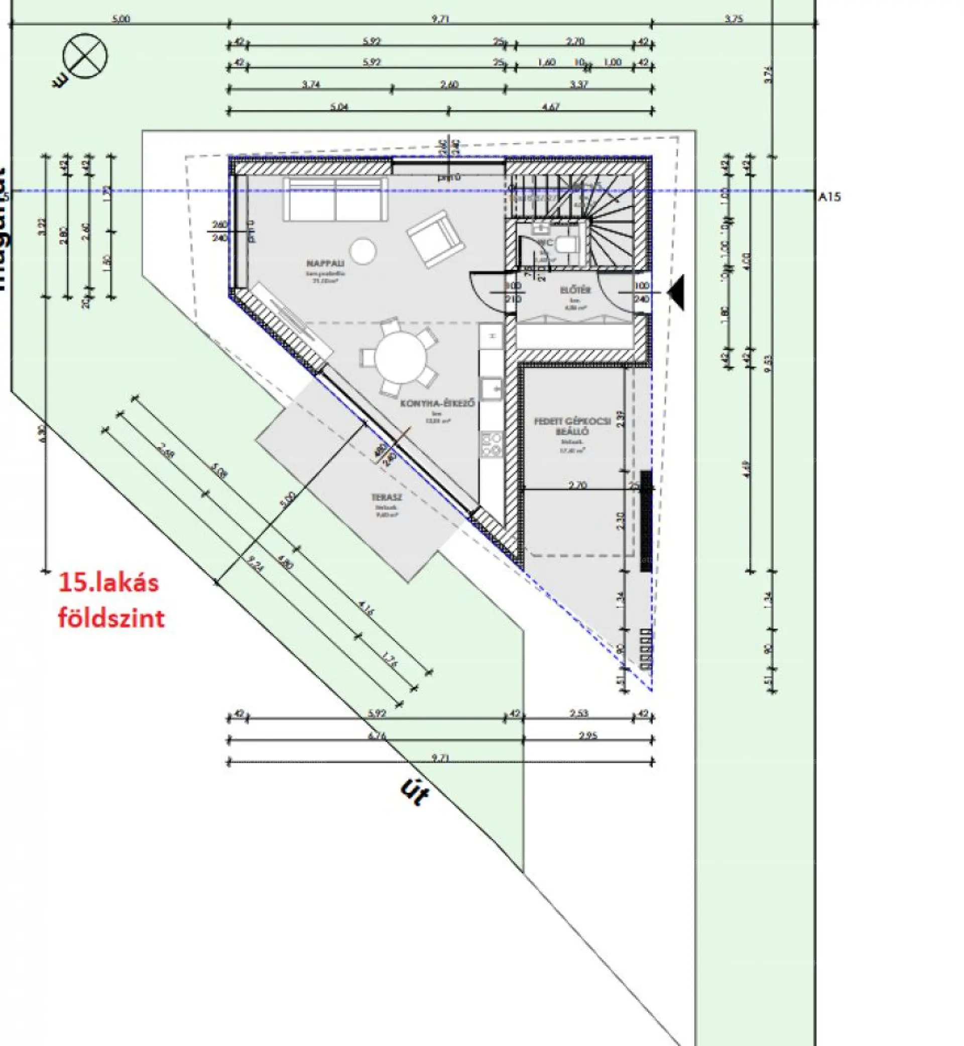 118,35 m2; 7,14m2 erkély, 14,54 m2 terasz; 315 m2 telekkel.