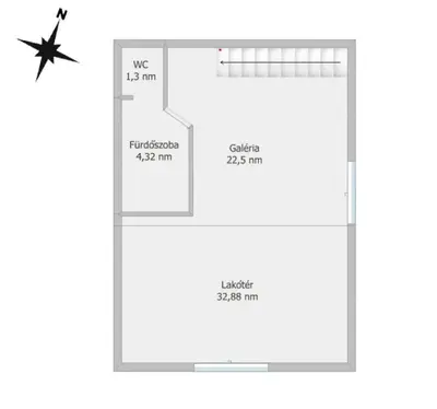 - itt található egy 4,32 nm-es fürdőszoba és 1,3 nm-es wc