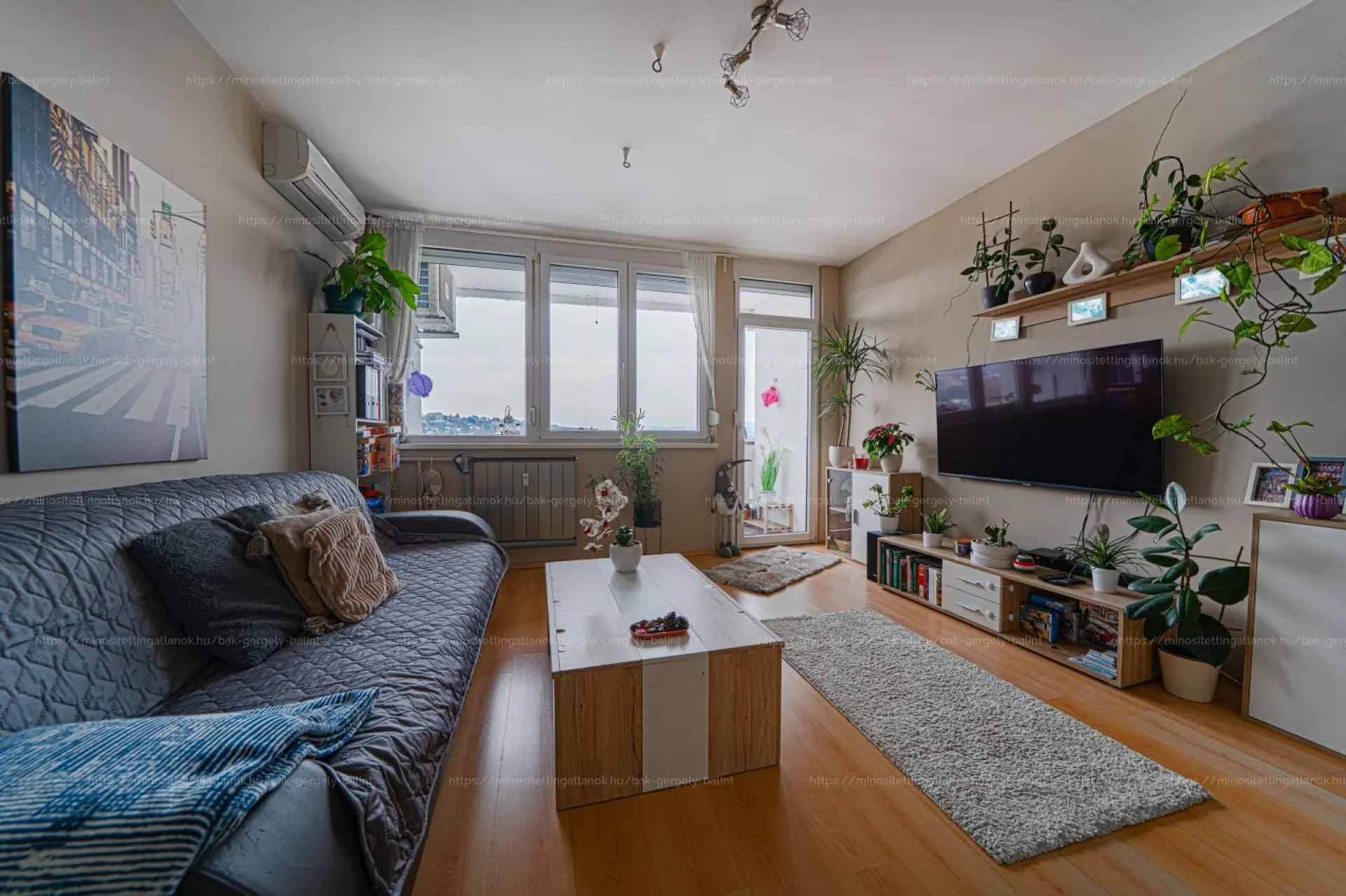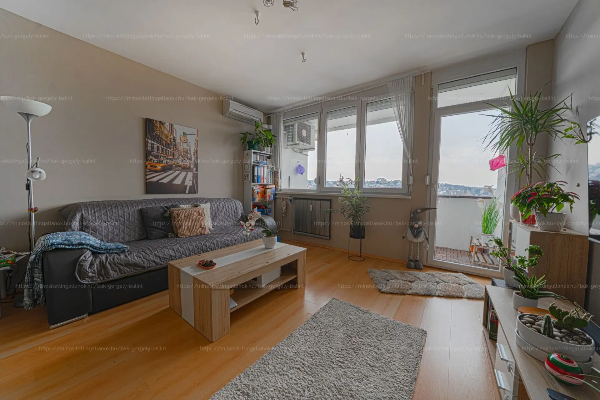 Remek elosztású és fekvésű az ingatlan, ami a 8. emeleten helyezkedik el. 61 m2-es, külön bejáratú szobákkal, és nyugati fekvésű panorámás erkéllyel rendelkezik. Örök panoráma a budai hegyekre, 2016-ban esett át a társasház a panelprogramon, ami érintette a külső szigetelést és a fűtéskorszerűsítést.