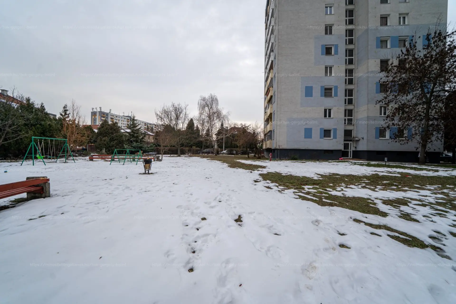 A panelépítésű társasház a 80-as évek második felében épült, 44 lakásos, folyamatosan karbantartva. Az épület 2016-ban a panelprogram keretében külső hőszigetelést kapott és fűtéskorszerűsítés ment végbe. A társasház saját használatú, kerítéssel zárt magánterületén füves, bokros, fás, gondozott kert húzódik. A lépcsőház rendjét és az udvar tisztaságát az ott lakó gondnok látja el. Saját tulajdonú felszíni parkoló ingyenesen használható kizárólag az ott lakók részére. A lift műszakilag felújítva. A társasház pénzügyei rendezettek, ezáltal megtakarításokkal rendelkezik. A lakóközösség barátságos és kulturált. A környék heggyel körbevett, parkos, sétányos, játszóteres, rengeteg a zöld terület. Kisgyerekes családoknak ideális.