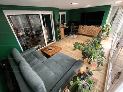 A 24 m²-es, teljesen beépített és fűthető erkély egész évben használható, teljes értékű élettérként funkcionál. Alkalmas nappalinak, hálónak, dolgozószobának vagy télikertnek, miközben az elhúzható tolóajtóknak köszönhetően megőrizte erkély jellegét is.
