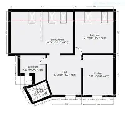 •Tetőtér: 2 tágas szoba (34,5 és 21,4 m2) világos hall (17,3 m2), fürdőszoba + wc, konyha (16 m2).