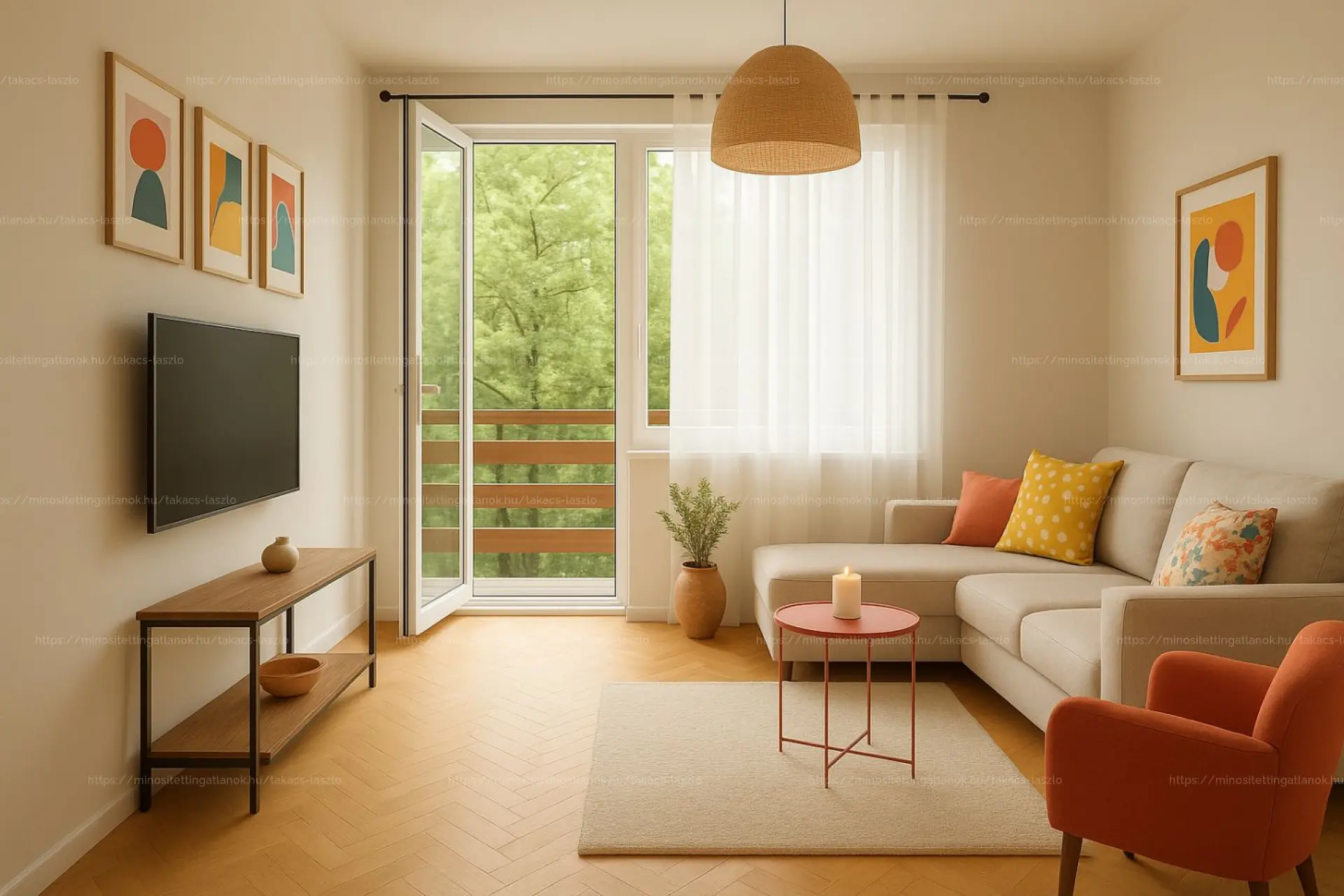 Elrendezés: nappali + 2 külön nyíló hálószoba