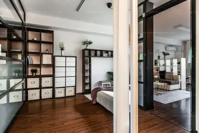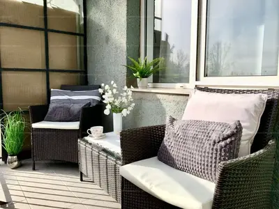 A lakás helyiségei korszerű, nagy méretű ablakokkal keleti és nyugati irányban tájoltak. A nappali, dolgozó és háló terek egyedi, modern térelválasztó megoldásoknak köszönhetően elkülönülnek, mégis egy teret képeznek, így a lakást teljes egészében átjárja a napfény. A reggeli kávéját egy keleti tájolású, Duna irányába és parkra néző, bútorozott, kényelmes loggián élvezheti !