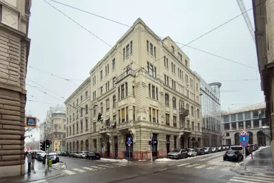 The apartment is on the 2nd floor of a 4-story, lift-equipped, well-maintained, Secessionist-style building.