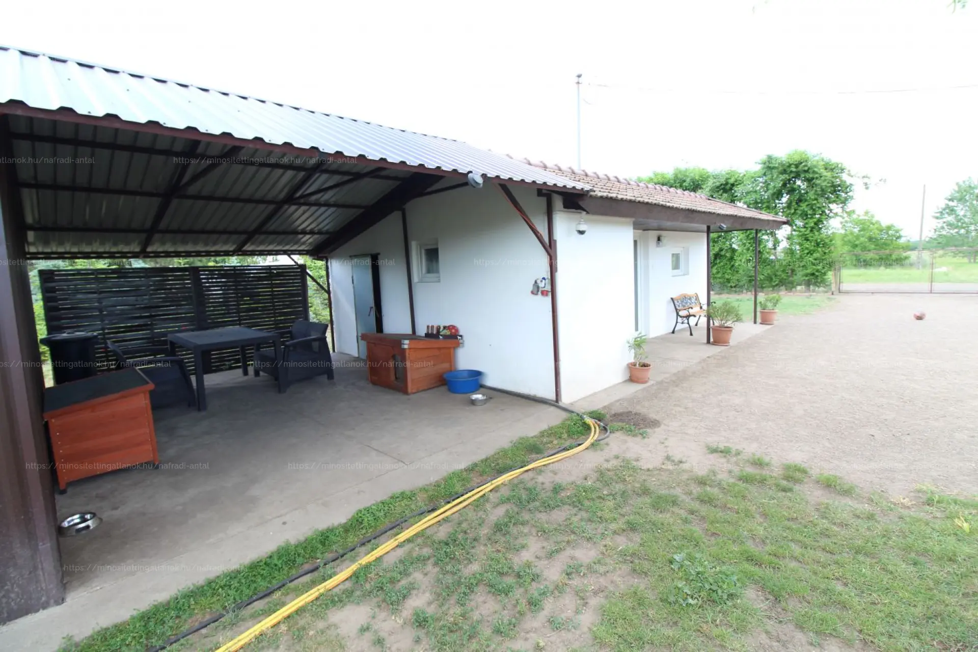 Tégla építésű, a közelmúltban felújított, korszerűsített 25 m2-es ház található rajta, melyben egy teakonyhának és étkezőnek is helyet adó szoba, egy fürdőszoba-WC és egy kívülről nyitható tároló lett kialakítva. Az épületben a kellemes hőérzetet új fűtő-hűtő klíma biztosítja.