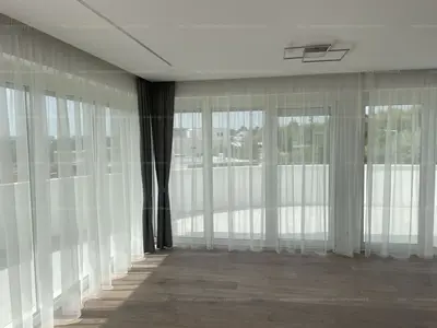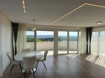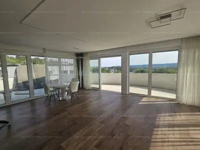 Az extravagáns modern épület legfelső szintjéről egyedülálló panoráma tárul elénk. Az ingatlan szinte teljesen új, gépesített konyhával rendelkezik. Szép világos, rengeteg ablakkal, teljesen körbesüti a nap, gyönyörű a kilátás.