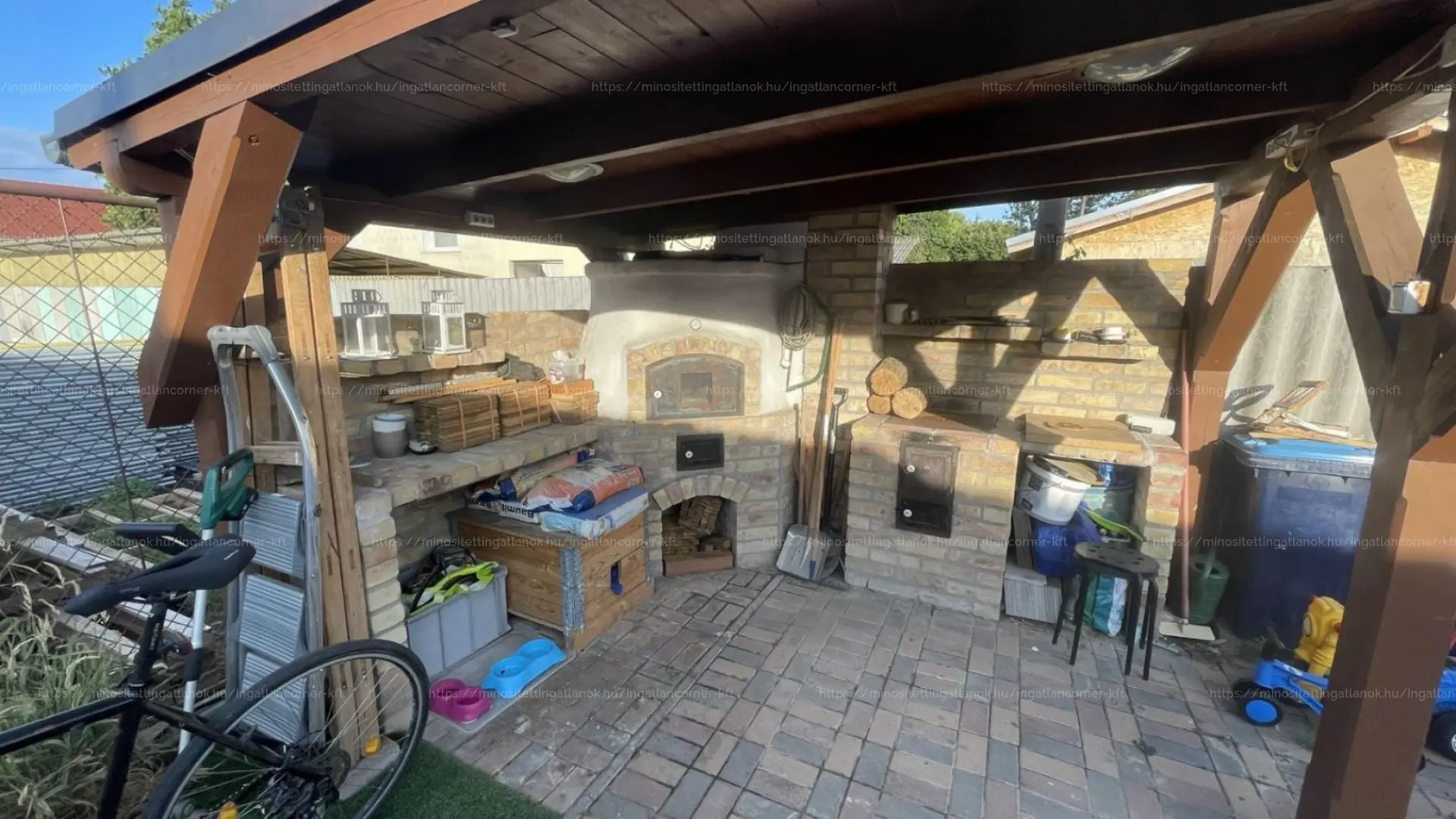 Fedett terasz, rendezett kert, kerti sütögető