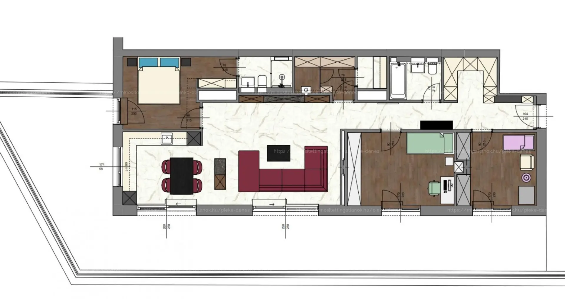 Az amerikai konyhás nappali ideális társasági hely, amelyet kettő kényelmes fürdőszobák és külön mosóterület egészít ki. A hűtő- és fűtőrendszerek energiatakarékos, hőszivattyús rendszer biztosítja a mennyezetbe épített kialakítással, amely nemcsak diszkrét esztétikailag, és hatékony. A geotarifás elszámolásnak köszönhetően a a fenntartási kiadások a lakás méretéhez képest rendkívül gazdaságosak.