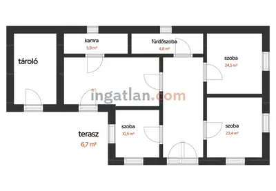 3 db szoba: 10,5 m² 23,4 m²