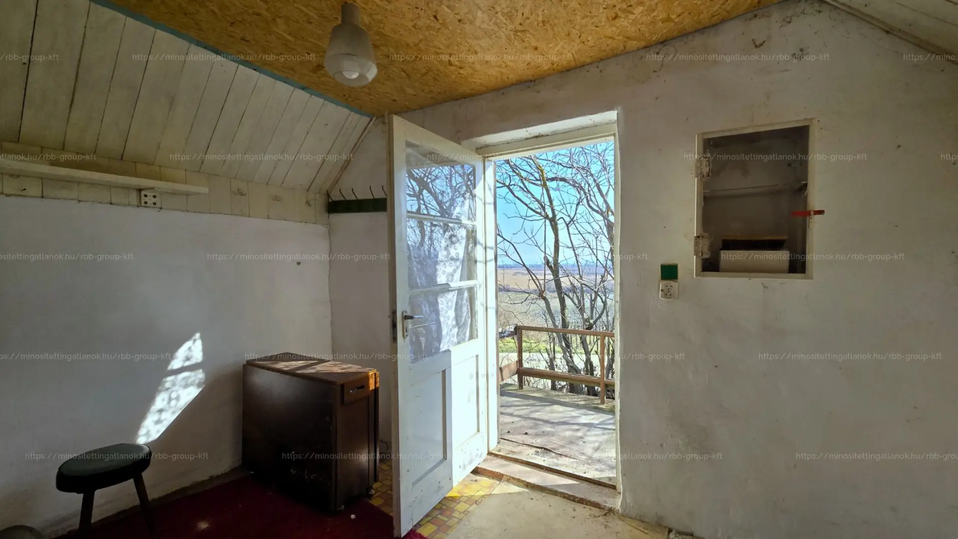 Az épület TÉGLA építésű, a tető cseréppel fedett, a padlás kívülről megközelíthető. A bejárat előtt egy kis terasz került kialakításra, mely a Balatonra néz.
