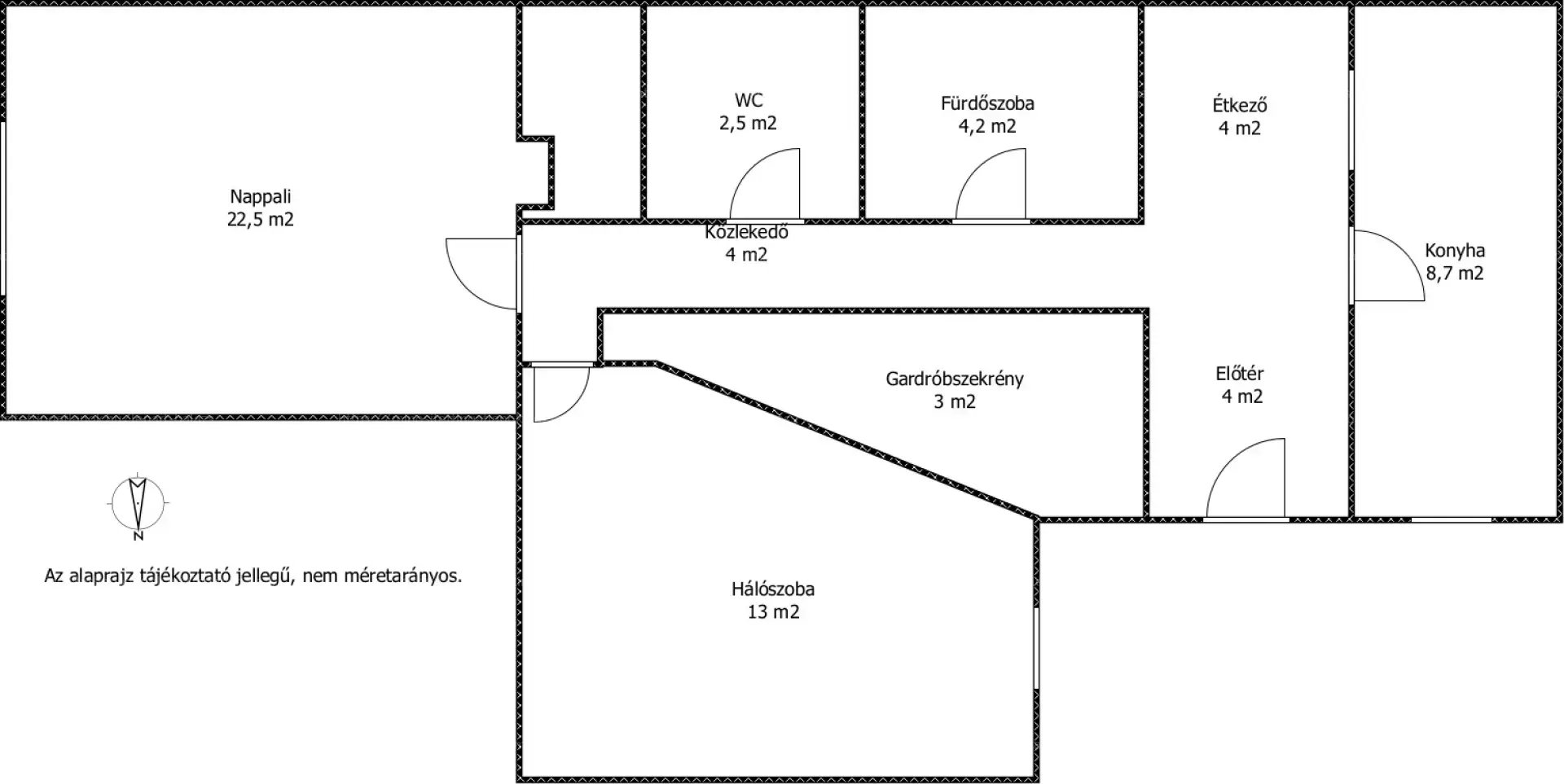 Mindkét szoba külön nyílik, a nappaliban van egy 8,5 m2-es fekvőgaléria.