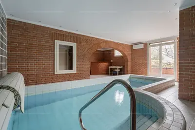A ház szíve a kandallós nappali–étkező–konyha egység, emellett 6 szoba szolgálja a kényelmes mindennapokat. Különleges extra a fedett, ellenáramoltatós belső medence, amely egész évben használható. A nagy terasz és a parkosított kert ideális pihenéshez és vendégfogadáshoz.