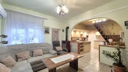 Eladó Lajosmizsén központi elhelyezkedésű, összesen nappali + 4 szobás, 172nm-es, 2 szintes családi ház, kétrendbeli használatra alkalmas, 1428nm önálló telken!