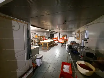 A munkaterület 48 m2, emellett egy 23 m2-es és egy 22 m2-es tároló helyiség, és egy 7 m2-es hűtőkamra is rendelkezésre áll.