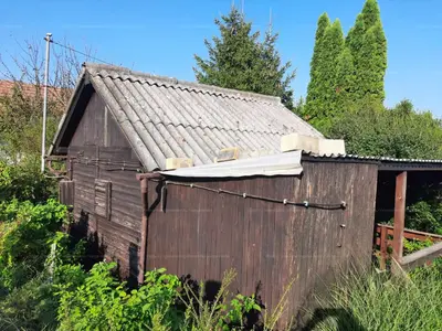 A telken jelenleg egy hangulatos kis faház áll, amely egy szobából, főzőfülkéből és fedett teraszból áll – ideális pihenőhely a természet szerelmeseinek.