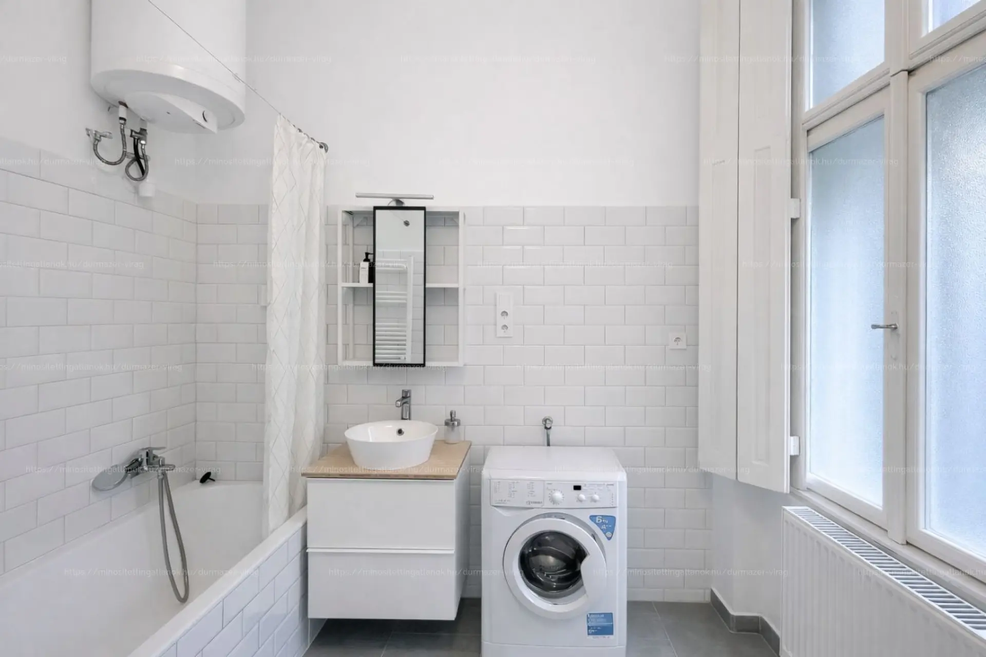 Felújított, természetes fényt kapó fürdőszoba