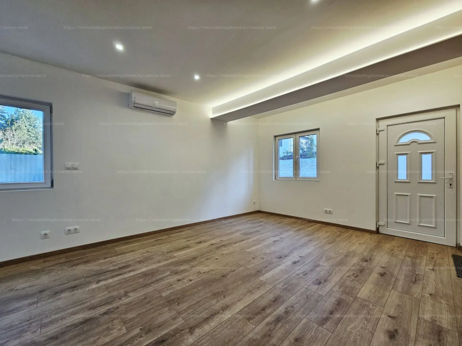 A fűtés hűtő-fűtő klímával és a fürdőszobában elektromos törölközőszárítóval megoldott.