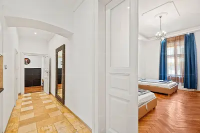 A lakás a neoreneszánsz stílusban épült, Petschaacher Gusztáv által 1882-ben megalkotott palota 4. emeletén található. Az épület liftes, kívül-belül rendezett és történelmi atmoszférája tökéletesen ötvöződik a modern kényelemmel.