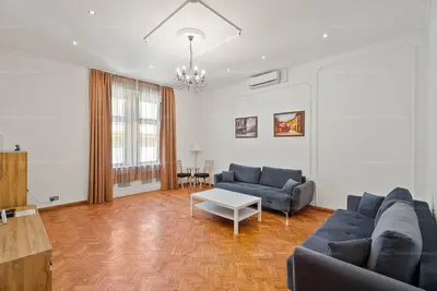 Budapest egyik legpatinásabb épületében, a Harkányi-palotában, az Andrássy út 4. szám alatt, közvetlenül a Deák Ferenc tér szomszédságában kínálom megvételre ezt a 101 m²-es, elegáns, teljesen berendezett lakást, amely a város szívében, mégis csendes, exkluzív környezetben helyezkedik el.