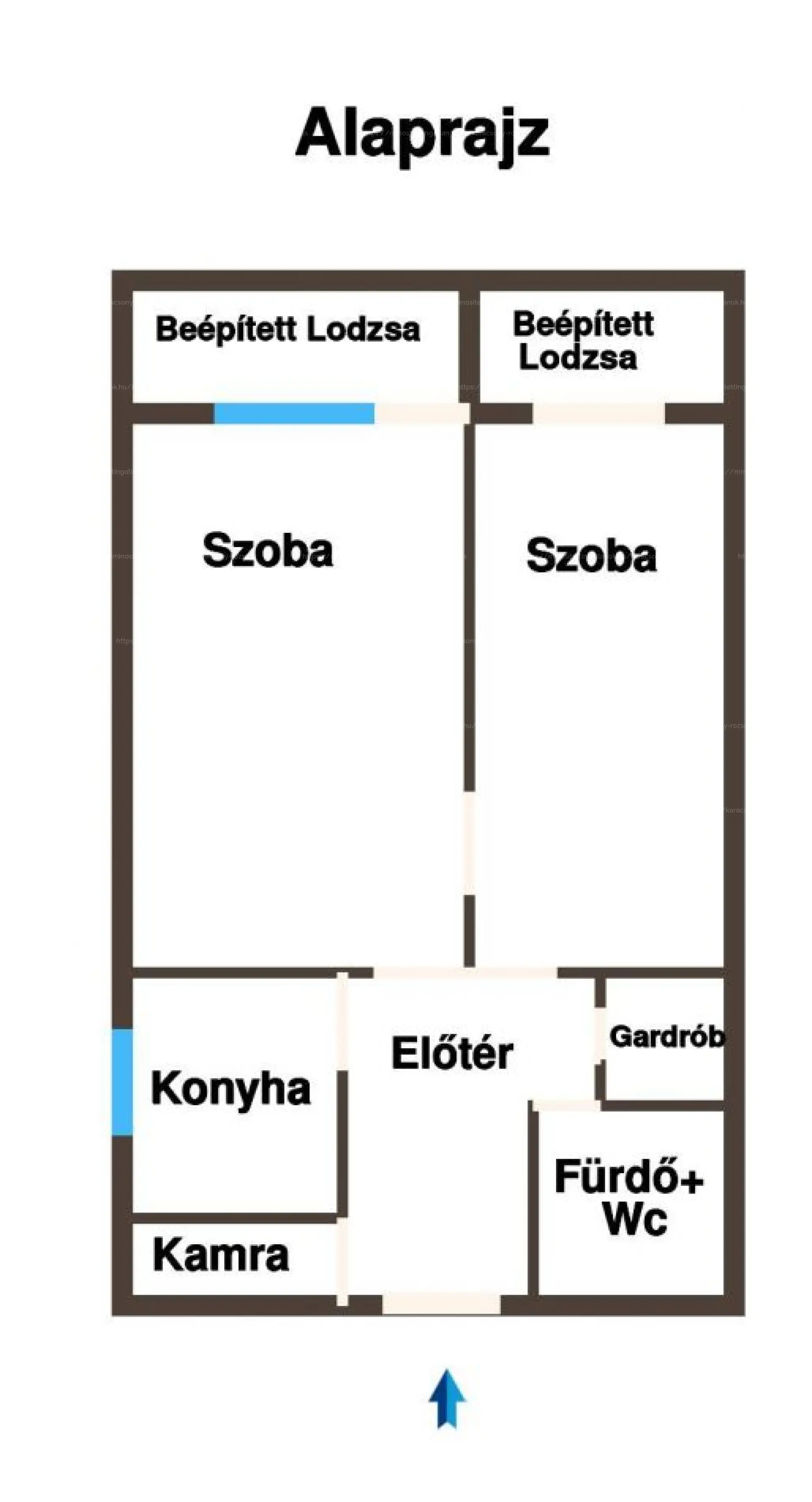 Szoba (15m2), Szoba (12m2) Konyha, Folyosó, Fürdő+Wc (Kádas Fürdőszoba!), Gardrób, Kamra, 2 db Beépített Lodzsa (4m2+3m2)