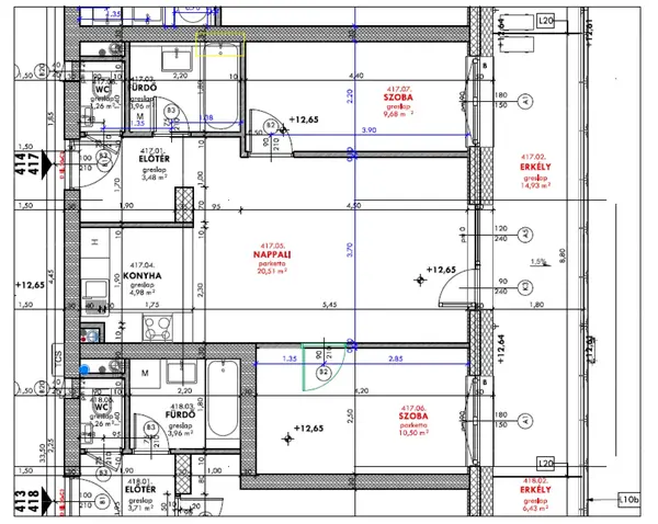 Az ingatlan 4. emeleti, keleti tájolású, nappali + 2 szobás, 54 nm alapterületű, 15 nm-es erkéllyel (nettó alapterület: 62 nm).