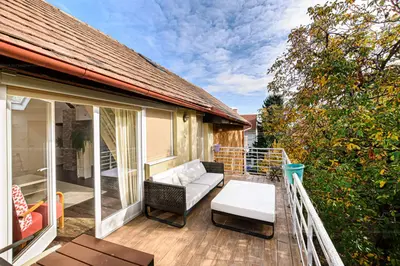 Budapest egyik legkedveltebb, zöldövezeti részén, a XII. kerület Kissvábhegyén, az Ügyész utcában kínálunk megvételre egy különleges hangulatú, 80 m²-es, belső kétszintes lakást,