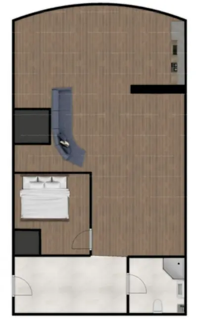 • Tágas nappali + hálószoba – klasszikus, hallos elrendezéssel