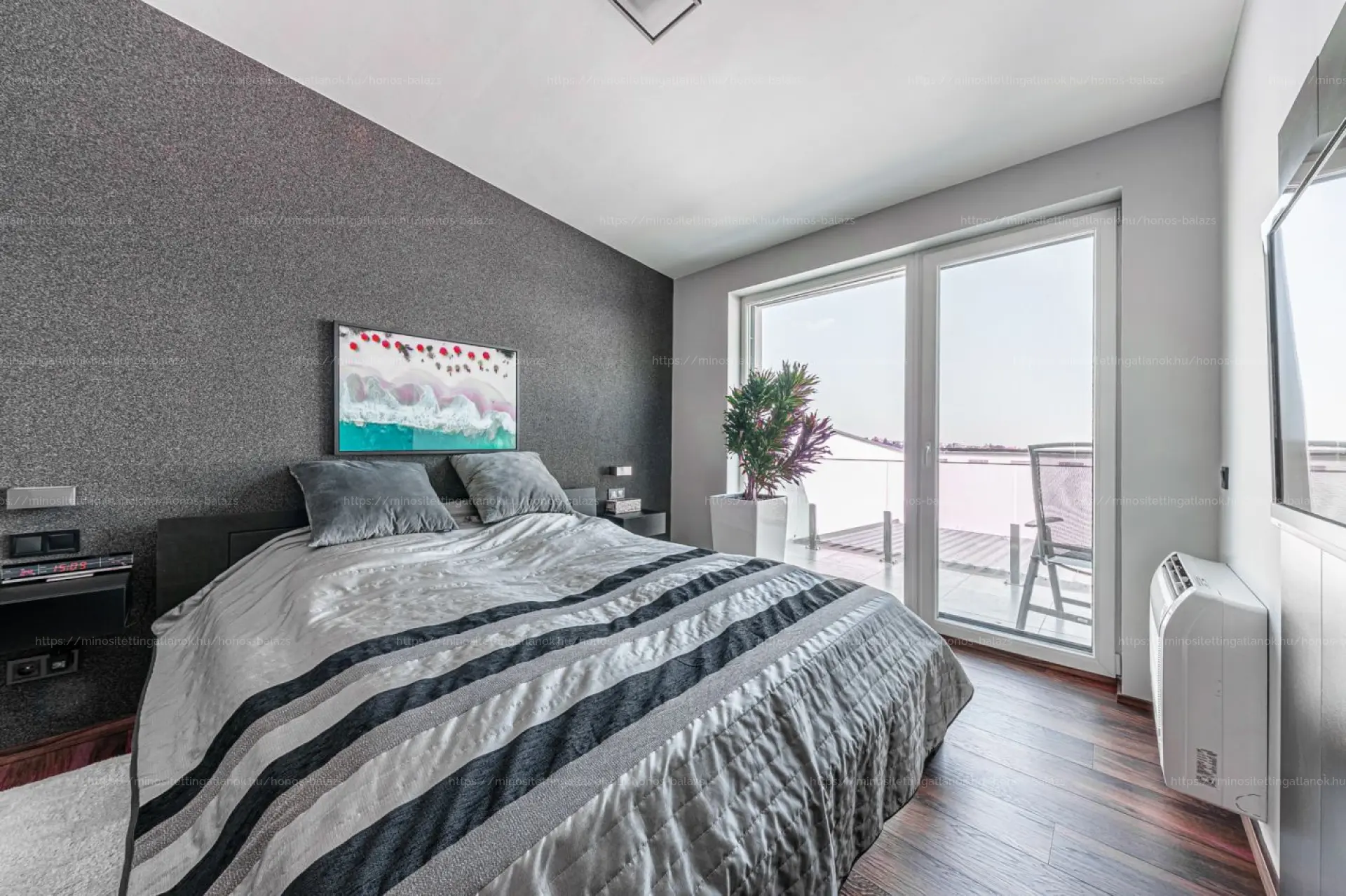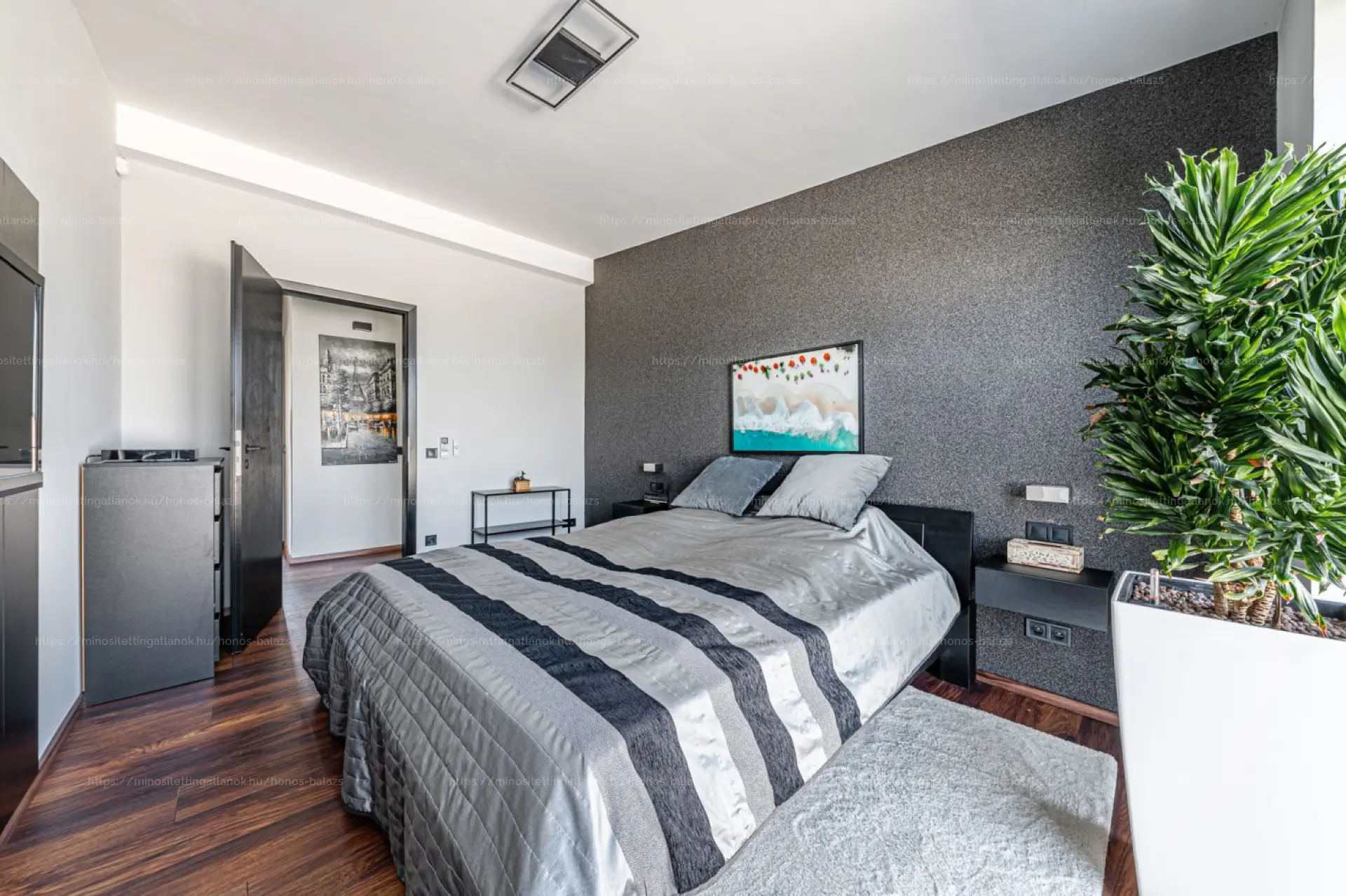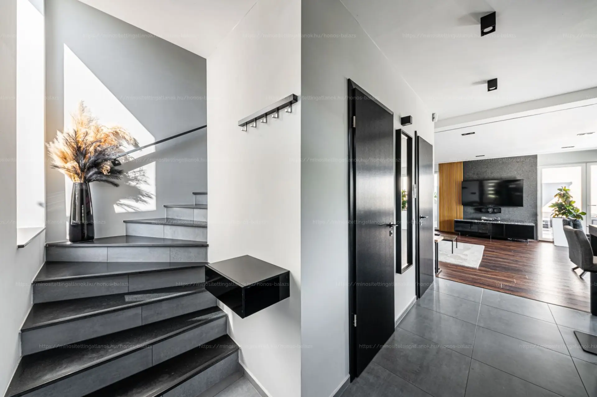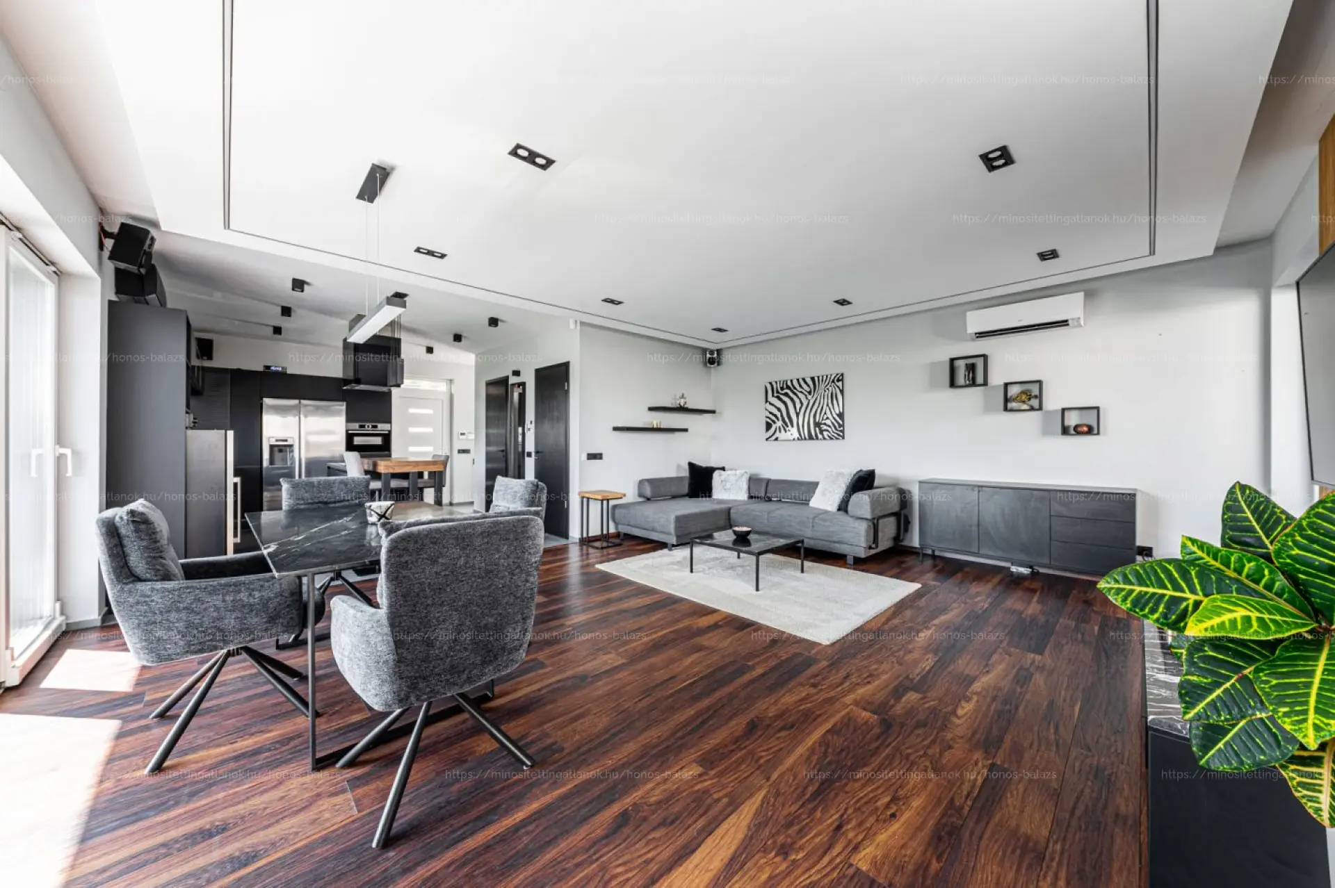 A hangulatot prémium parketta, többzónás LED-es rejtett világítás és beltéri-kültéri DENON hangrendszer teszi teljessé.