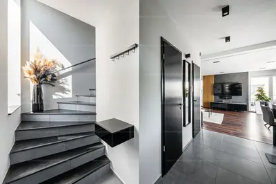A belső terek minőségi anyaghasználatot tükröznek: tömör gránit lépcső, NOLTE német konyha ujjlenyomatmentes frontokkal, beépített világítással, Bosch gépekkel, sziget páraelszívóval és borhűtővel, a fürdőszobában és a mosdóban nagy méretű olasz burkolatokkal és Arezzo szaniterekkel.