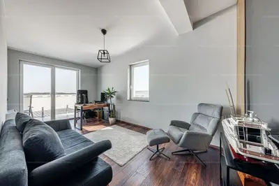 Az átgondolt belső elrendezésnek köszönhetően a mindennapi élet kényelmes és praktikus, a nappali mellett egy épített zuhanykabinnal rendelkező fürdőszoba, külön mellékhelyiség, háztartási helyiség és gardrób található, utóbbi akár második fürdőszobává is alakítható.