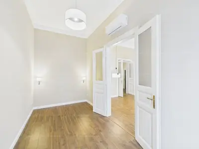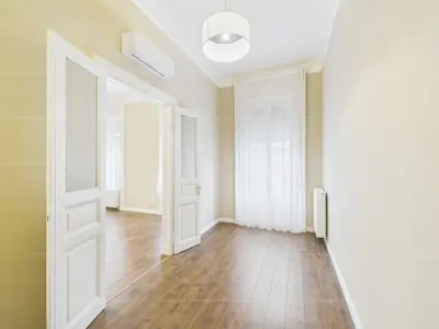 A bérház második emeletén kínálunk megvételre egy a 74 m²-es (a valóságban 76 m2-es), 2 szobás + hallos, magas minőségben felújított nagypolgári lakást, amelyben a történelmi karakter és a modern komfort tökéletes egyensúlyt alkot.
