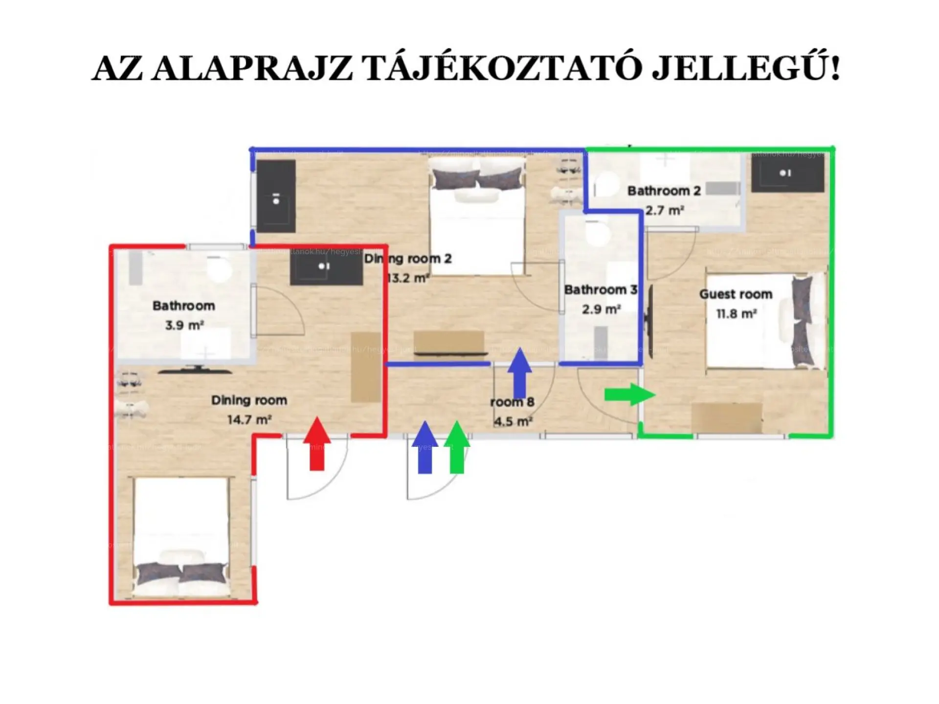 A VI. kerületi Lovag utcában, a Nagymező utca közelében eladó egy 55 m²-es, 1. emeleti lakás, melyből 3 külön bejáratú, kb. 17 m²-es, teljesen felszerelt miniapartmant alakítottak ki. A lakások a rövid távú bérbeadás piacán teljes teltházzal üzemelnek, és kizárólag egyben eladók.