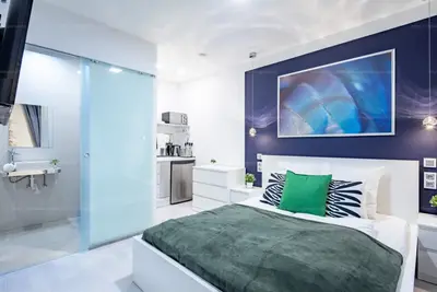 A VI. kerületi Lovag utcában, a Nagymező utca közelében eladó egy 55 m²-es, 1. emeleti lakás, melyből 3 külön bejáratú, kb. 17 m²-es, teljesen felszerelt miniapartmant alakítottak ki. A lakások a rövid távú bérbeadás piacán teljes teltházzal üzemelnek, és kizárólag egyben eladók.