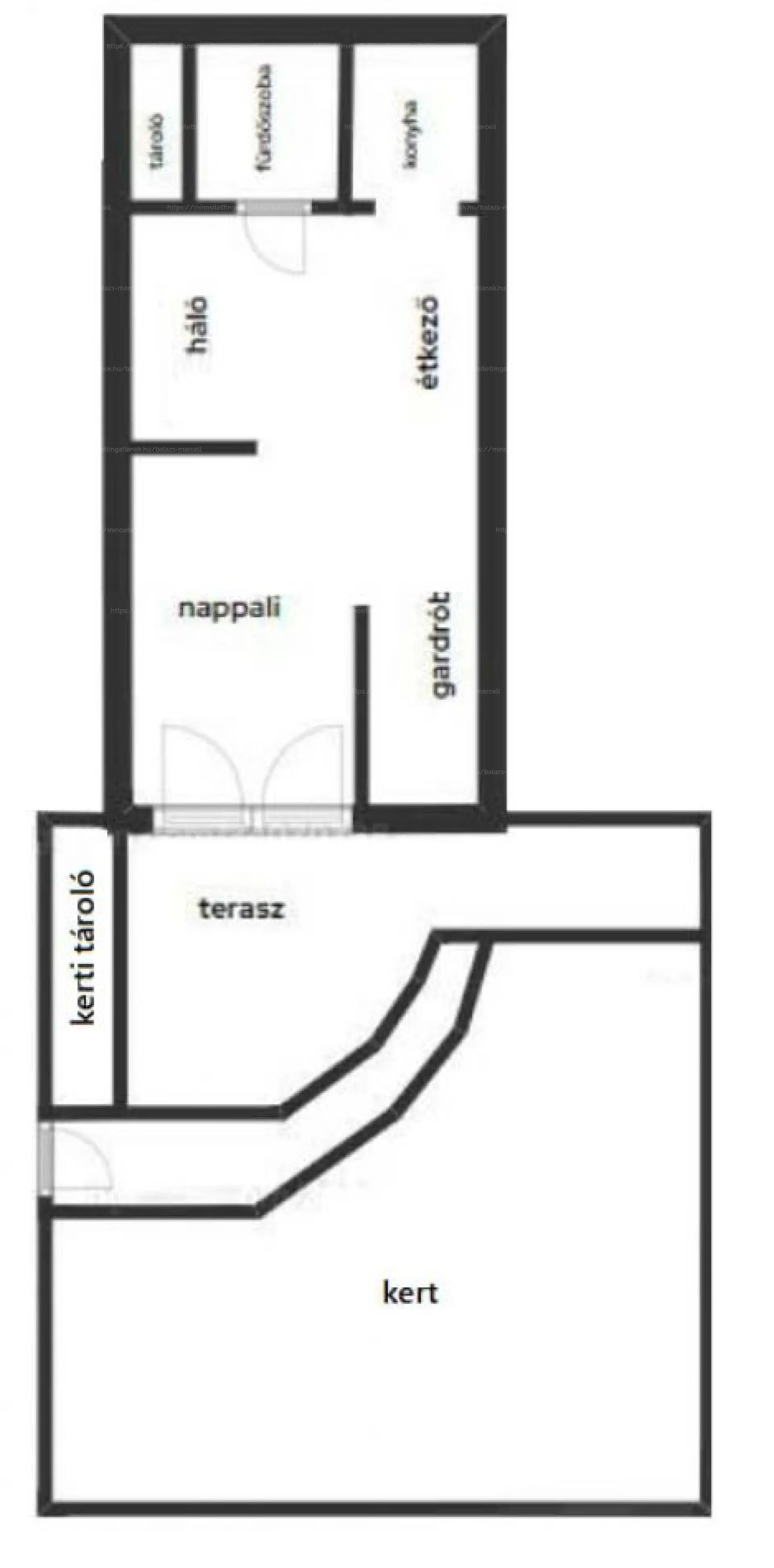 30 m² lakótér + kb. 40 m² kizárólagos használatú kertkapcsolat