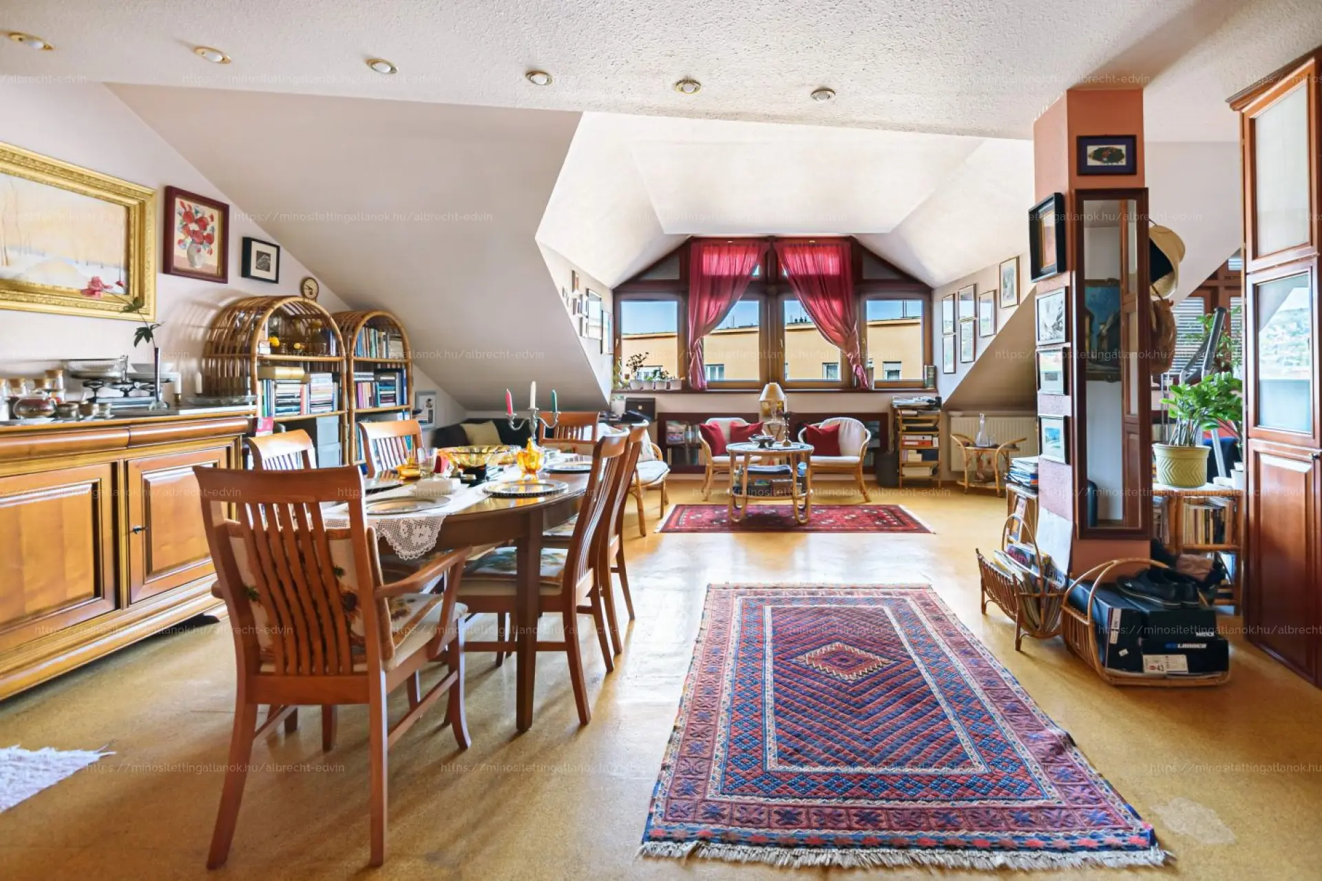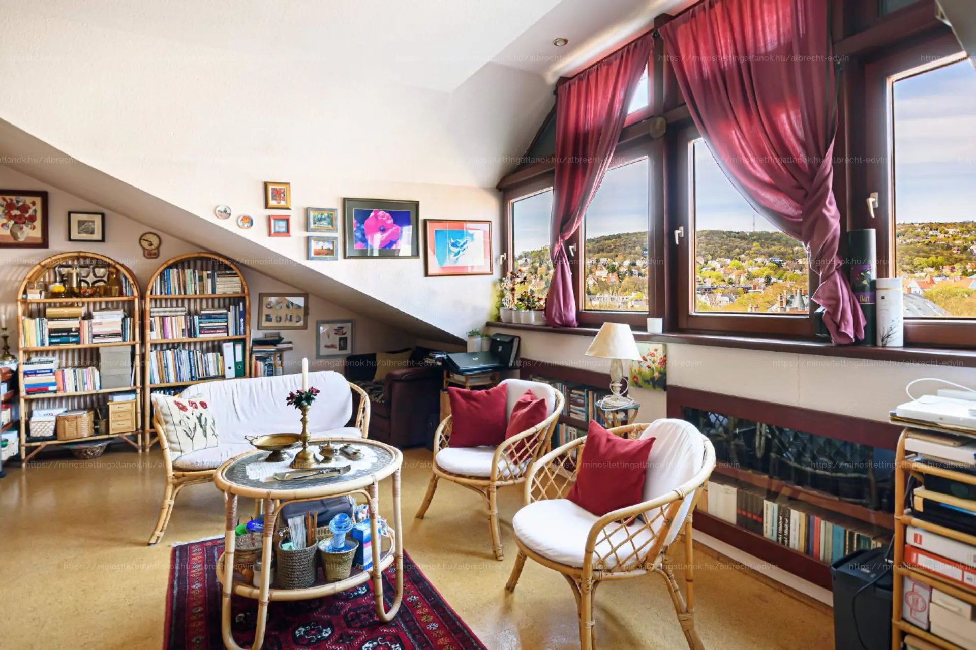 Eladó egy különleges, panorámás legfelső emeleti otthon Budapest egyik legnemesebb részén, a 2. kerületben, a Rózsadomb lábánál.