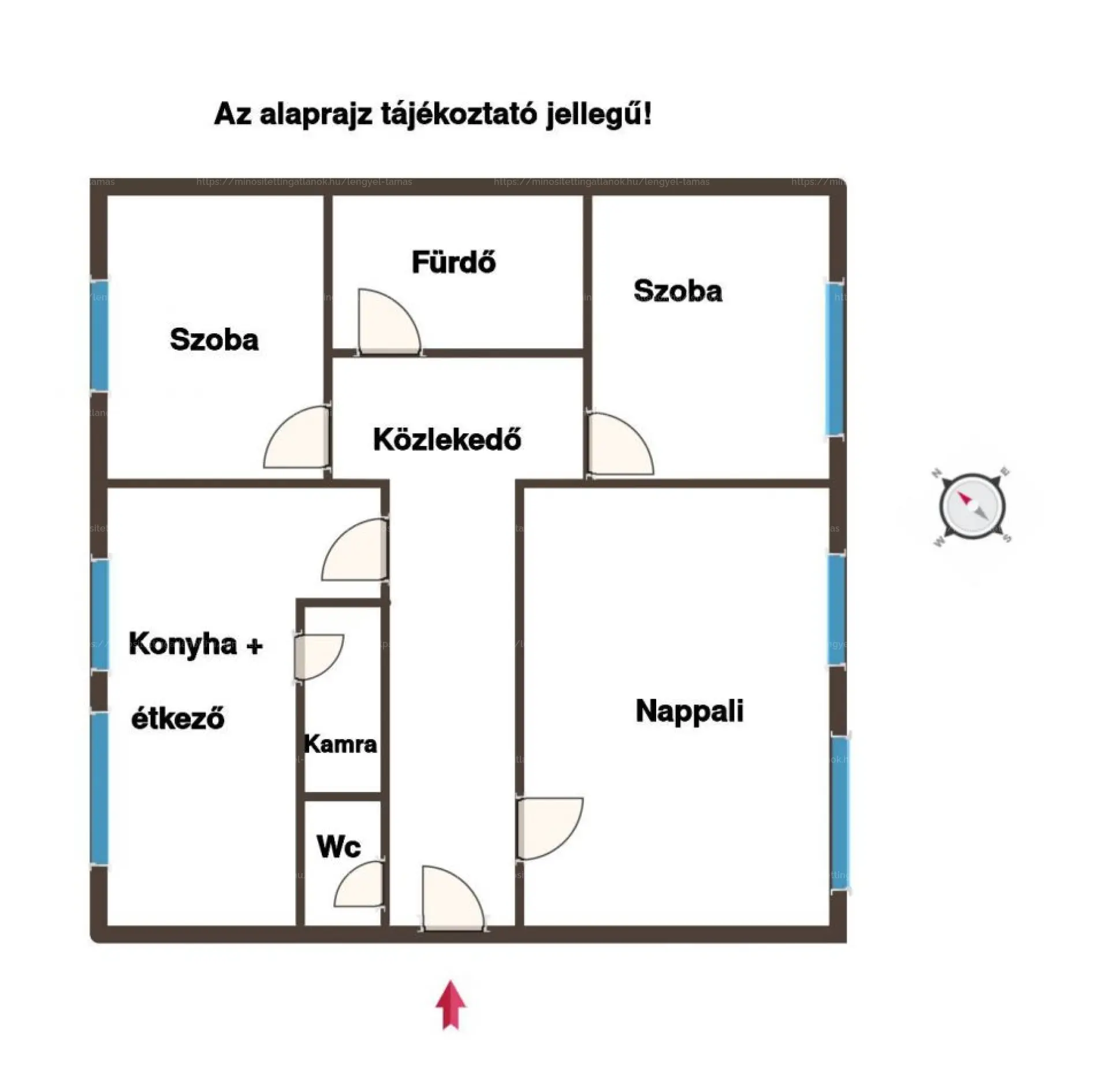 A lakás tájolása dél-keleti, így a természetes fény a délelőtti órákban kellemesen bevilágítja a tereket, de a délutáni hőségben már árnyékos.