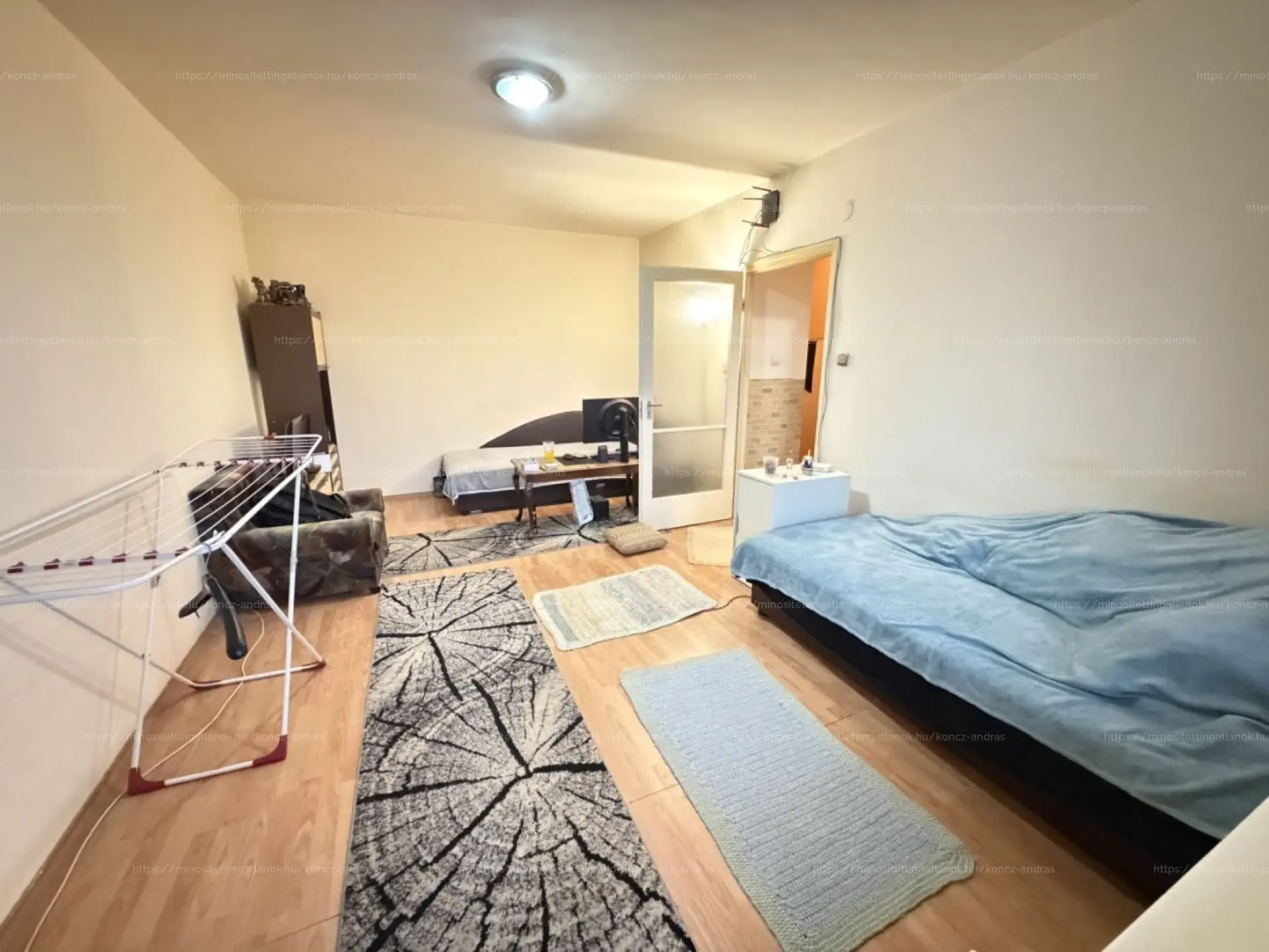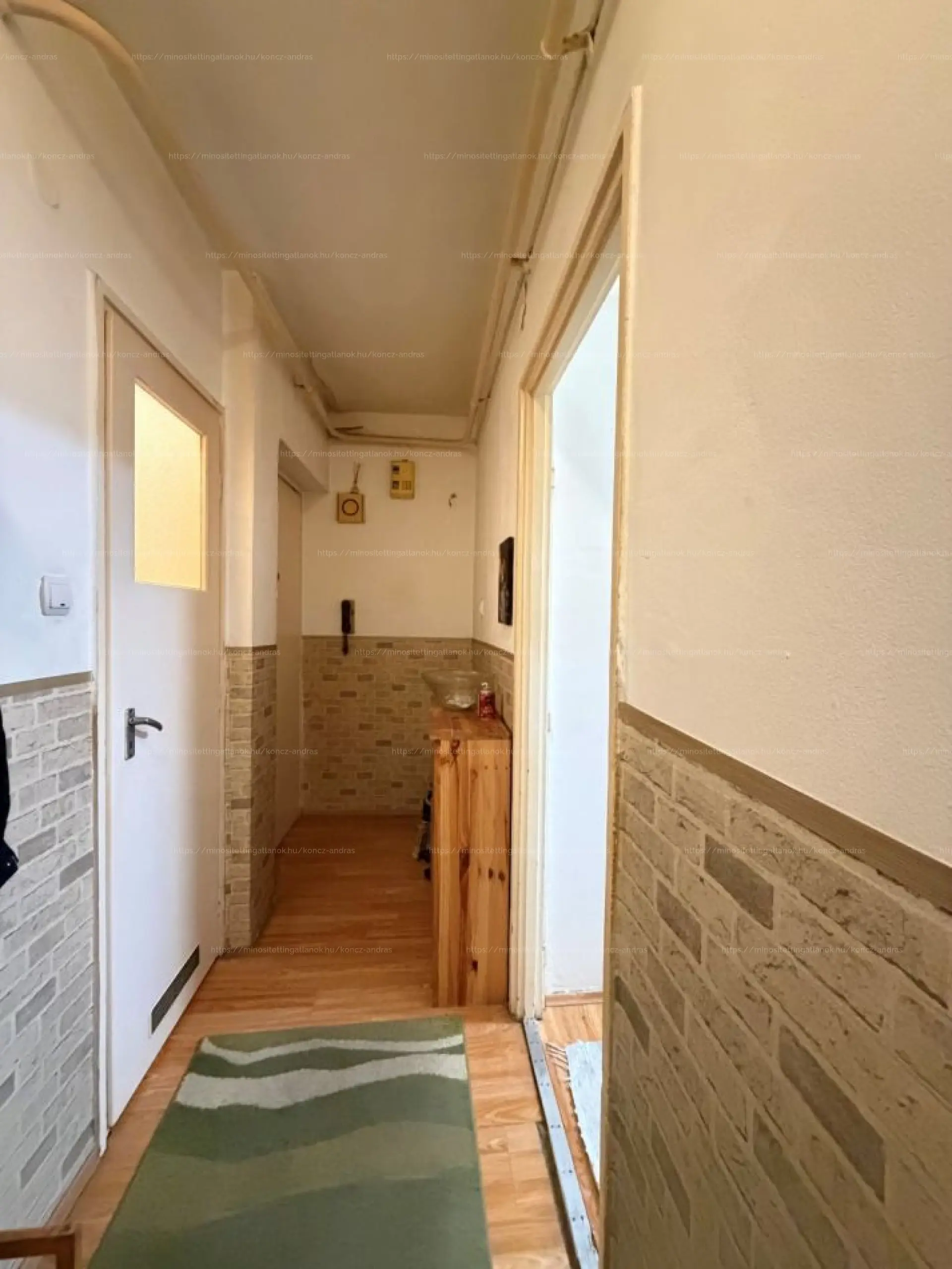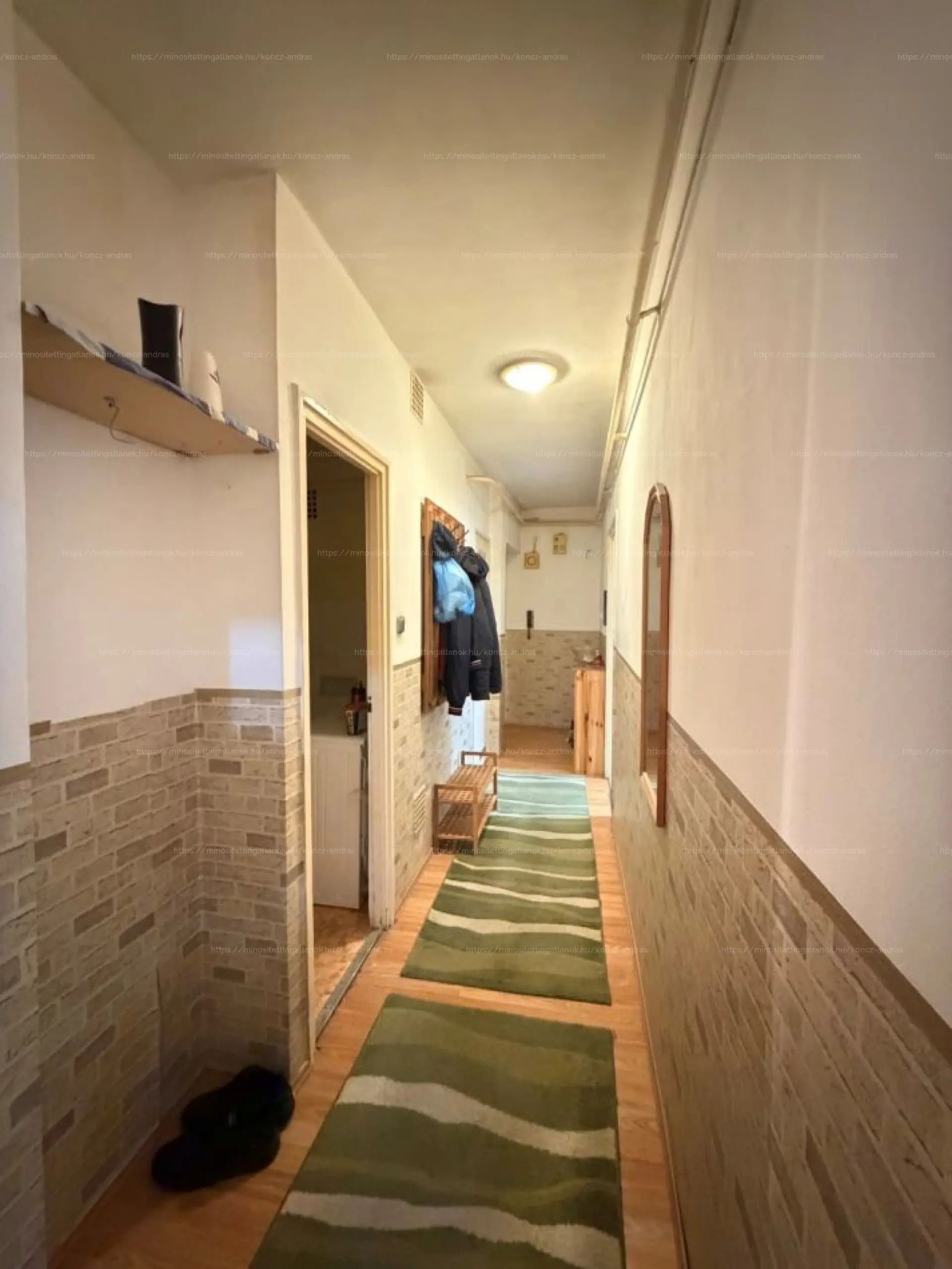 A falak tapétásak és festettek, szobák és a közlekedő burkolata szőnyegpadló, a fürdő, wc, konyha járólappal burkolt. Parkolás az épület körül fizetős övezetben megoldható.