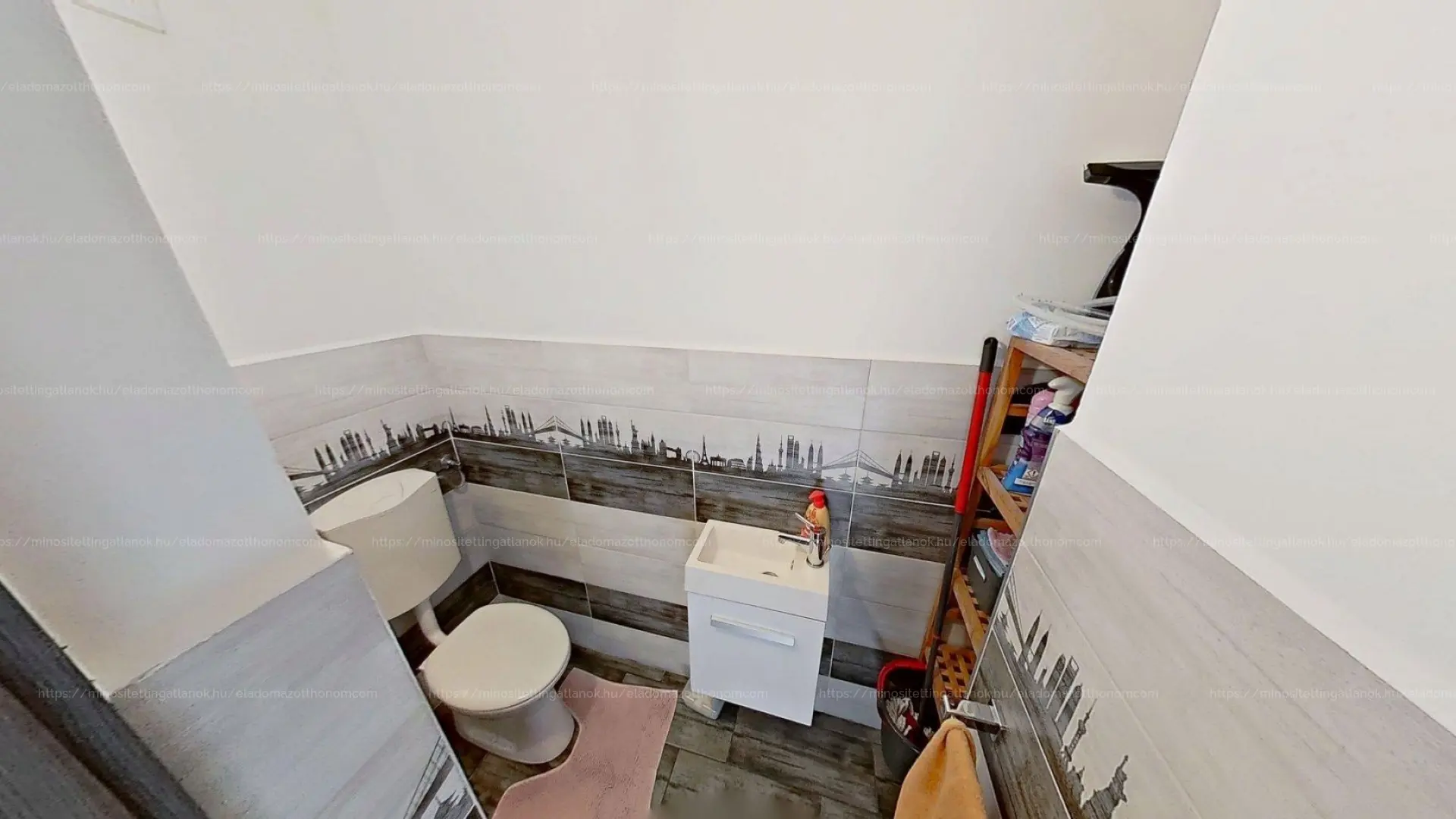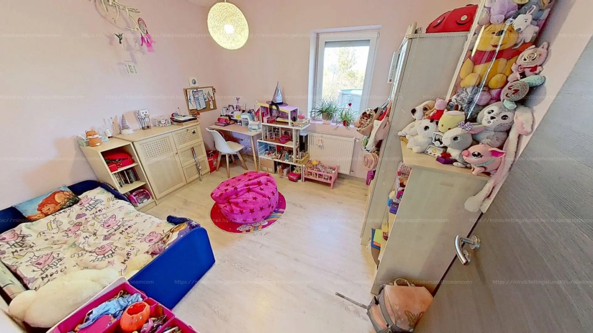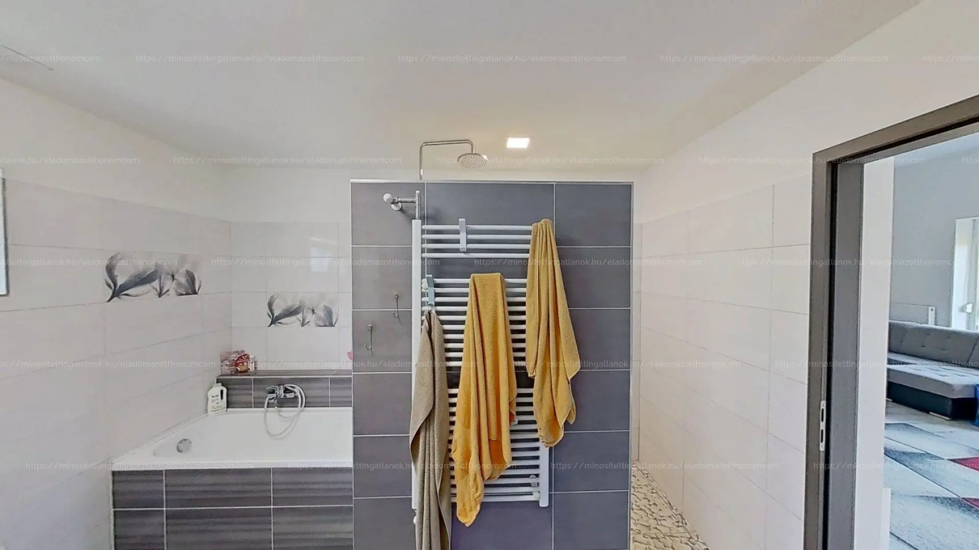 A ház elosztása nem is lehetne jobb, az egy szinten minden a hatalmas nappaliból nyílik. Innen nyílik 3 hálószoba - a szülői háló ráadásul nagy gardrób szobával is rendelkezik - fürdő, valamint innen lehet kimenni a páratlan panorámával bíró, 20 nm-es teraszra is.